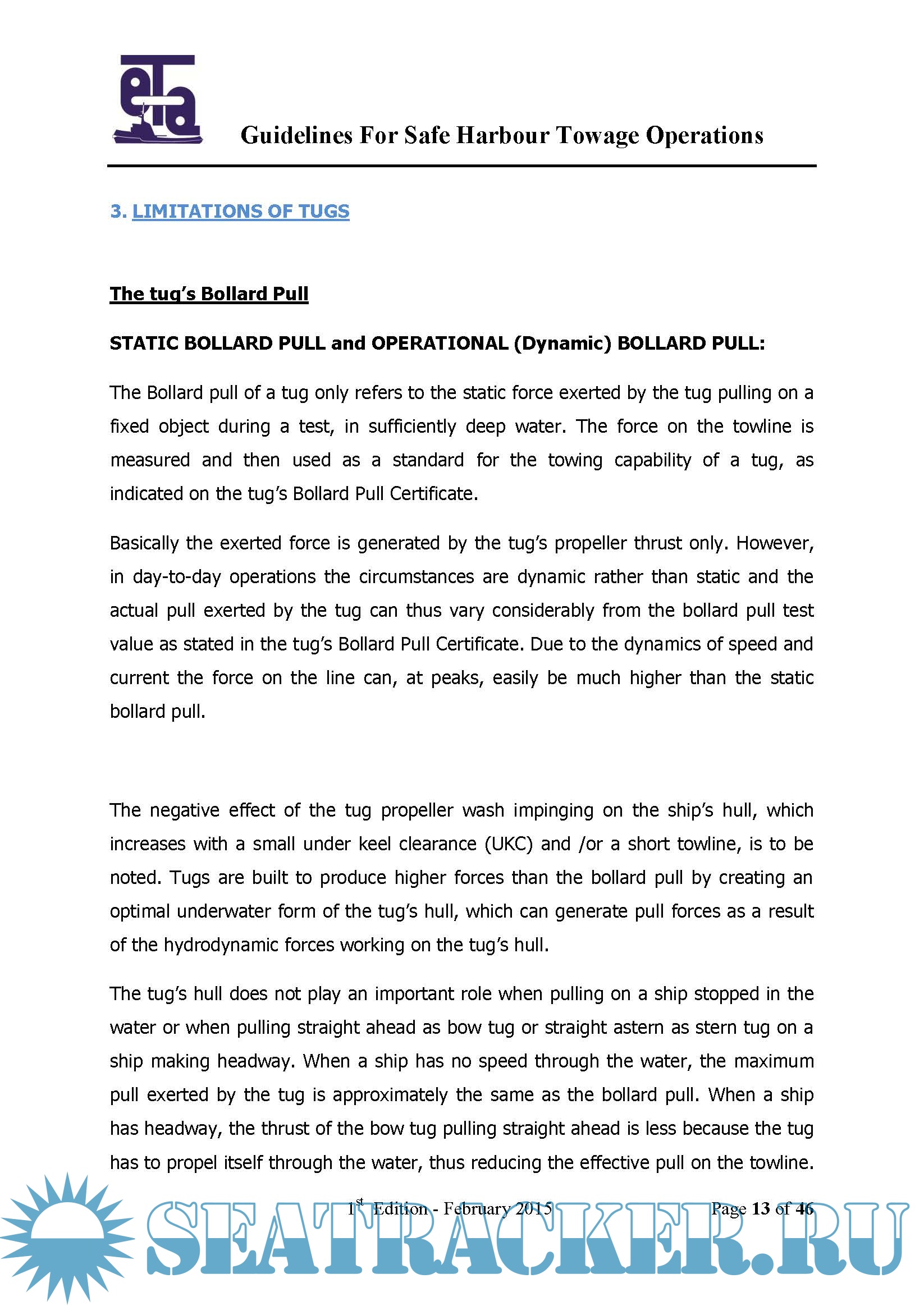 Description: This document is intended to portray tug’s operational safety issues for the attention of all those concerned, mainly Pilots, Masters of vessels being assisted, their bridge teams and mooring parties.