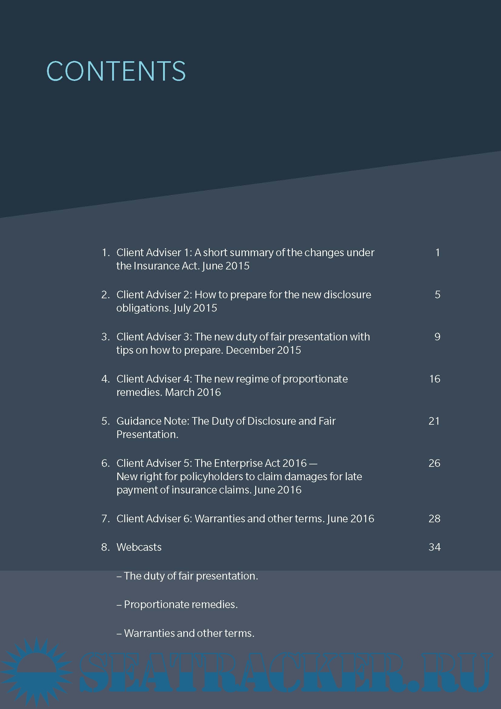 Year: 2016 Language: english Author: Marsh Genre: Guide Format: PDF Quality: eBook Pages count: 40 Description: The Insurance Act 2015 (the “Act”) received Royal Assent on 12 February 2015, bringing about the biggest change to English insurance contract law in more than 100 years, and will come into force in August 2016. Marsh very much welcomes the Act and has been lobbying the Law Commissions to introduce these reforms since they started their consultations in 2006. The Act redresses an imbalance in the existing law, which is sometimes overly in favour of insurers. For example, it abolishes basis of contract clauses; clarifies the insured’s duties relating to pre-contractual disclosure of information, and introduces fairer and more proportionate remedies for non-disclosure and breach of warranty. Here at Marsh, we look forward to helping you prepare for and reap the benefits of the Act.
