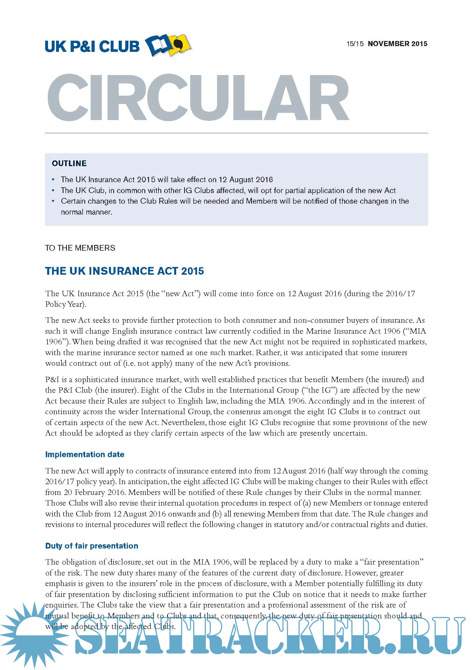 The Insurance Act 2015 A practical guide to changes in UK Insurance Law, prepared for members of…