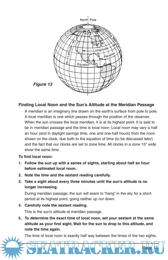 Year: 2008 Language: english Author: Davis Instruments Genre: Guide Format: PDF Quality: eBook Pages count: 24 Description: This booklet gives the following information about your Davis Sextant: • Operating the sextant • Finding the altitude of the sun using the sextant • Using sextant readings to calculate location • Other uses for the sextant
