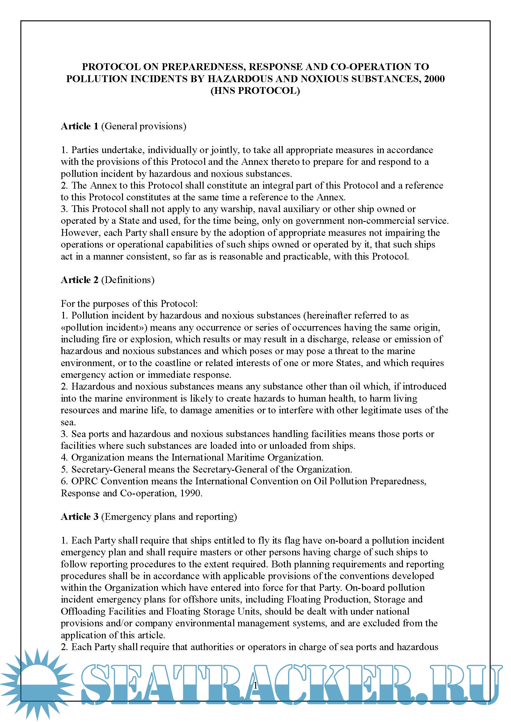 The HNS Protocol has yet to enter into force
