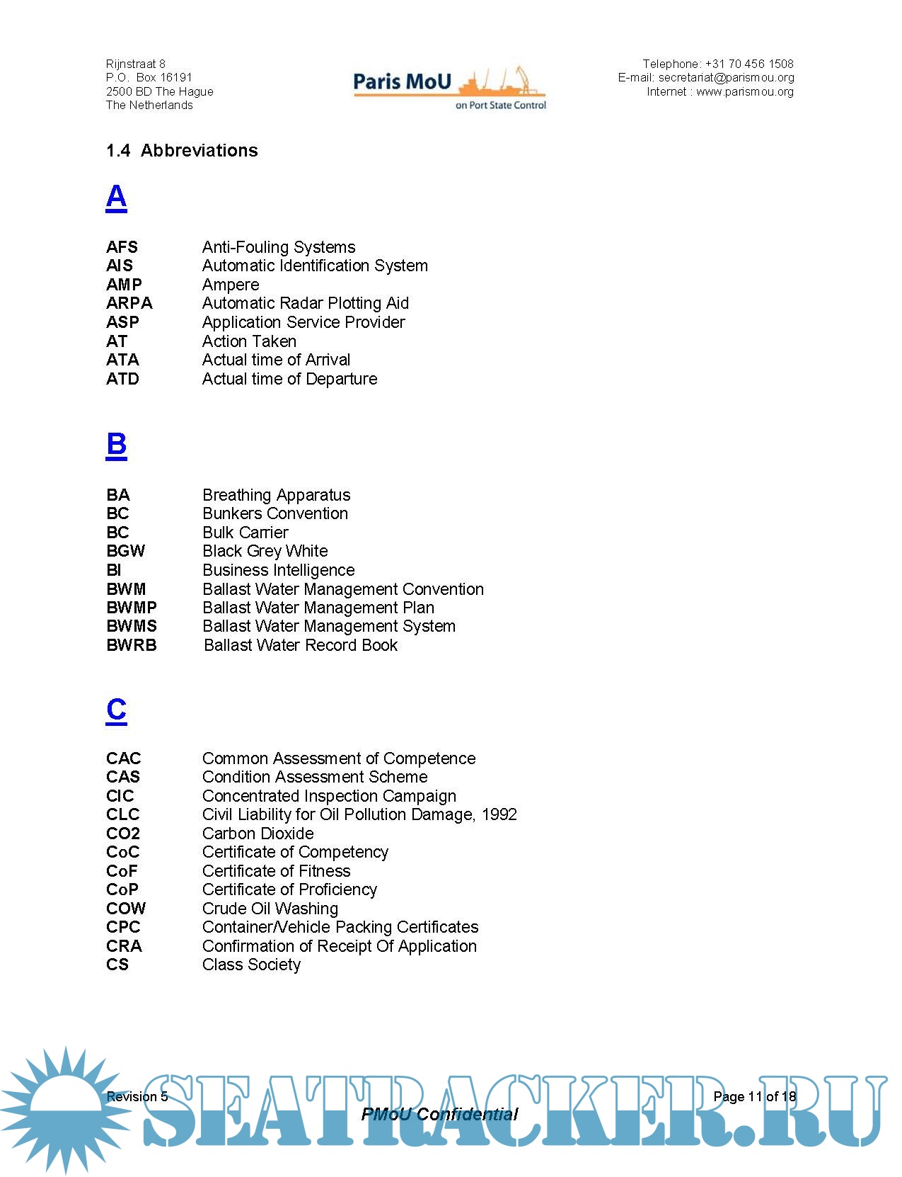 Any definition or abbreviation used in the Paris MoU should be included in this PSCCInstruction. The section dealing with the “Definitions and Abbreviations” in all PSCCInstructions will direct the PSCO to consult this PSCCInstruction.