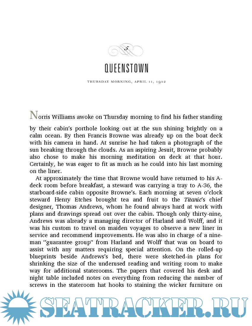 Year: 2012 Language: english Author: Hugh Brewster Publisher: Crown Publishers ISBN: 978-0-30798471-5 Format: PDF Quality: eBook Pages count: 355 Description: Gilded Lives, Fatal Voyage takes us behind the panelled doors of the Titanic’s elegant private suites to present compelling, memorable portraits of her most notable passengers. The Titanic has often been called “An exquisite microcosm of the Edwardian era,” but until now, her story has not been presented as such. In Gilded Lives, Fatal Voyage, historian Hugh Brewster seamlessly interweaves personal narratives of the lost liner’s most fascinating people with a haunting account of the fateful maiden crossing. Employing scrupulous research and featuring 100 rarely seen photographs, he accurately depicts the ship’s brief life and tragic denouement and presents compelling, memorable portraits of her most notable passengers: millionaires John Jacob Astor and Benjamin Guggenheim; President Taft's closest aide, Major Archibald Butt; writer Helen Churchill Candee; the artist Frank Millet; movie actress Dorothy Gibson; the celebrated couturiere Lady Duff Gordon; aristocrat Noelle, the Countess of Rothes; and a host of other travellers. Through them, we gain insight into the arts, politics, culture, and sexual mores of a world both distant and near to our own. And with them, we gather on the Titanic’s sloping deck on that cold, starlit night and observe their all-too-human reactions as the disaster unfolds. More than ever, we ask ourselves, “What would we have done?”