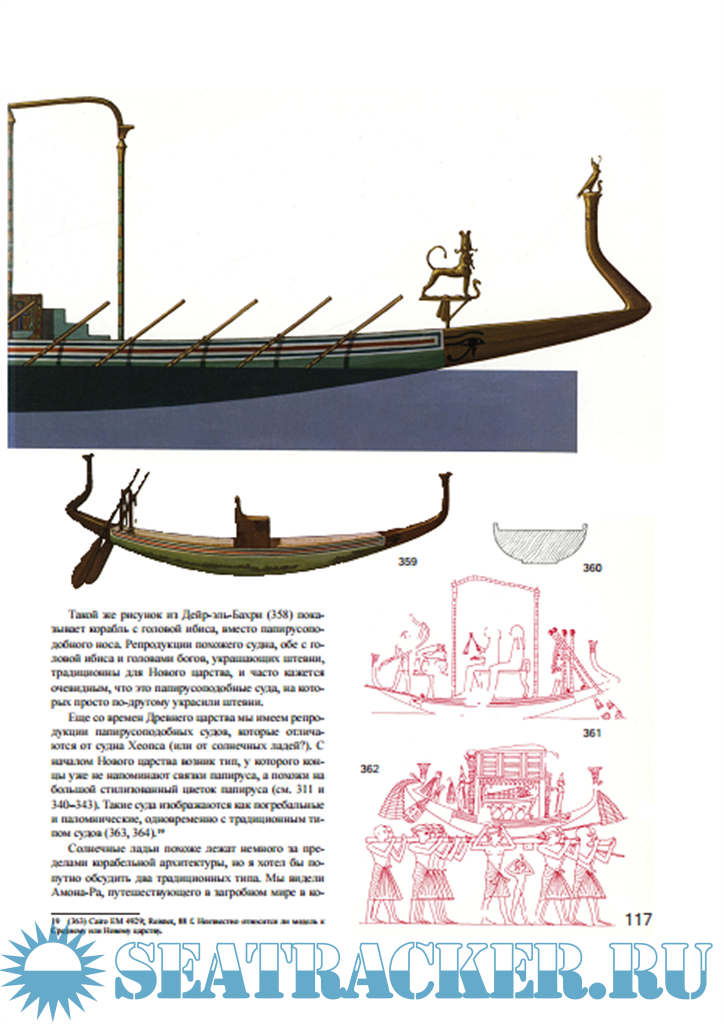Описание: «Они проделали отверстие в одном из блоков, заглянули внутрь и обнаружили части лодки: руль, весла, тяжелые доски, шесты, пиллерсы, бимсы и дверцы». Это произошло, когда в Гизе, возле Каира, в 1952 г. был найден гигантский строительный набор древнеегипетского судна,