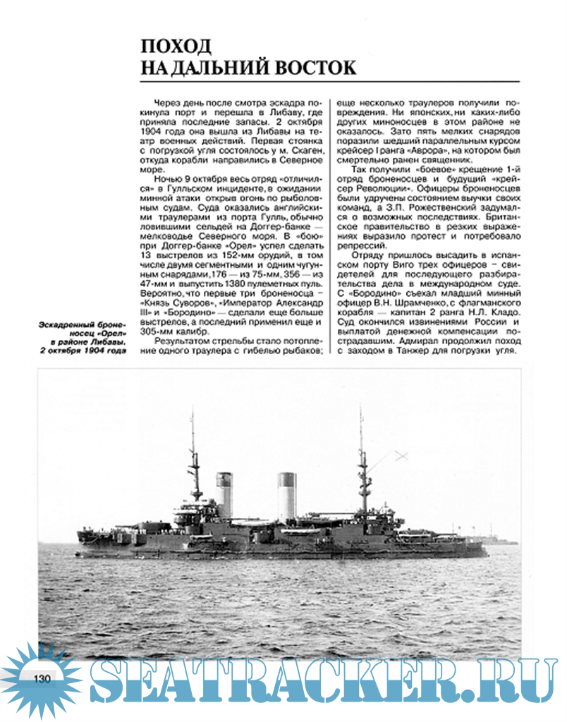 Описание: "Ведя за собой эскадру, он имел уже сильный крен и тоже пылал - горели мостики, вырывалось пламя из орудийных полупортов, играя багровым отсветом на воде. Потом, не выходя из строя, он повалился на правый борт, сделав последний залп из двенадцатидюймовой башни …" - так вспоминали о гибели броненосца "Бородино" участники Цусимского сражения, в котором пали смертью храбрых три из четырех кораблей этого типа, составлявших ядро русской эскадры ("Князь Суворов" и "Император Александр III" затонули со всем экипажем, с "Бородино" спасся лишь один матрос). Историки до сих пор спорят о причинах трагедии - если американские эксперты объявили конструкцию этих линкоров "самой неудачной из всех когда-либо построенных" (высокий центр тяжести при множественных боевых повреждениях приводил к потере остойчивости и переворачиванию), то отечественные специалисты, наоборот, считают их наиболее совершенными броненосцами эпохи, объясняя опрокидывание не ошибками кораблестроителей, а недопустимой...