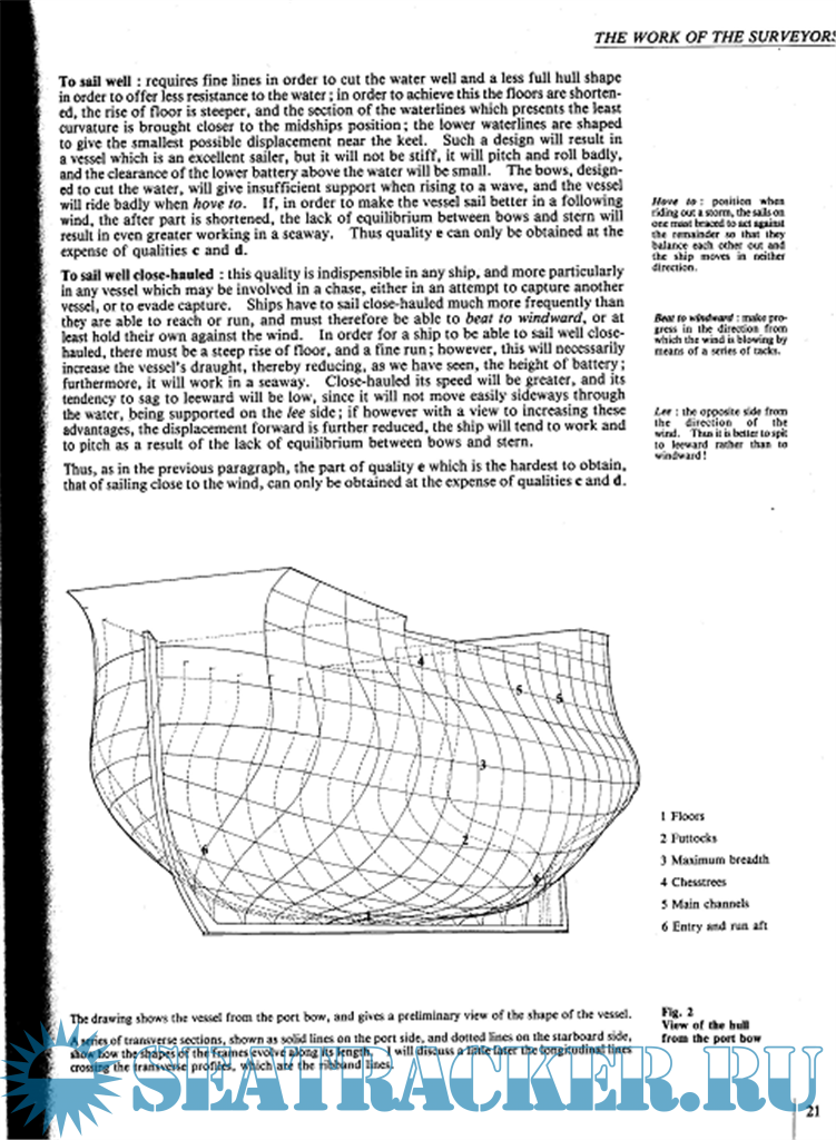 II. Работа корабельных инспекторов. Высокие требования к военным кораблям. Изучение обводов корпуса. Водоизмещение корабля. Расчеты. Спецификация.