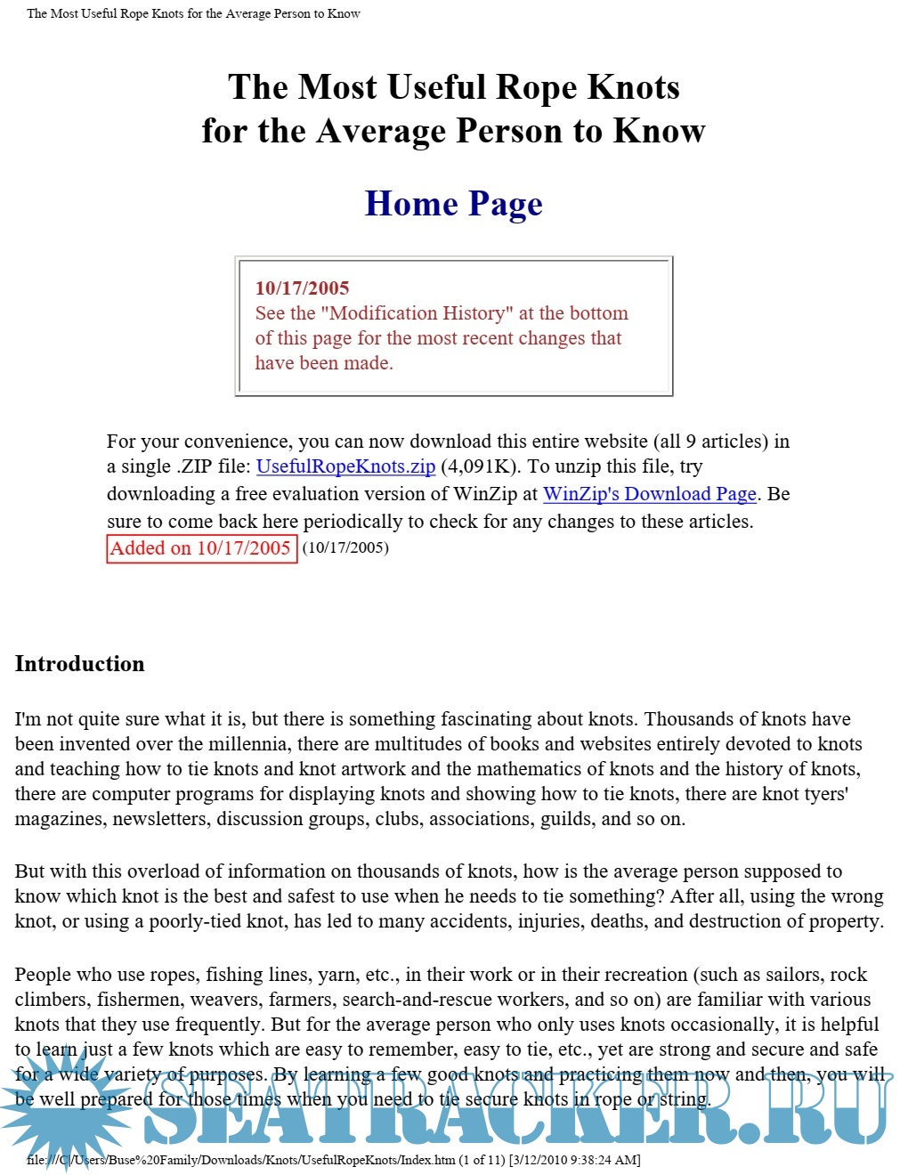 Year: 2005 Language: english Author: Unknown Genre: Manual Format: PDF Quality: Scanned pages Pages count: 577 Description: The Most Useful Rope Knots for the Average Person to Know.
