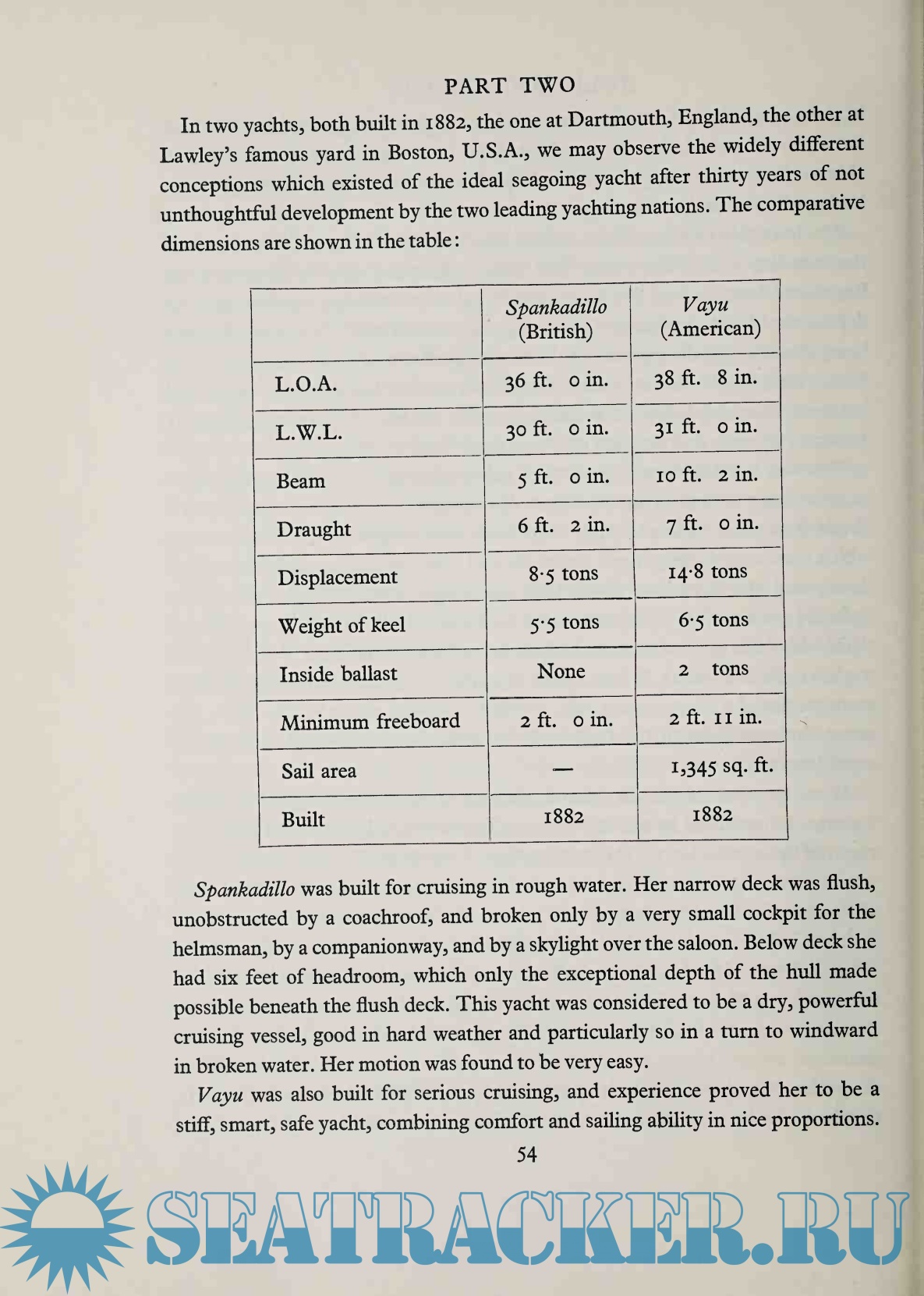 Year: 1955 Language: english Author: Phillips-Birt D.H.C. Genre: Manual Publisher: A.S. Barnes and Company Format: PDF Quality: Scanned pages Pages count: 146 Description: There are today more than three hundred and sixty yacht and sailing clubs listed in Lloyd’s Register. So many clubs as this constitute an appreciable feature of the British way of life, and if a social historian turns one day to study the fallen civilization of the West and attempts to understand the things that were, these clubs will have to pass under his survey. For it is not by the bread and butter essentials that an age is judged. A civilization is known by its flowers, not its vegetables. Greece lives by its marbles; Elizabethan England is a projection of its theatre, ofRaleigh, and ofthe poems of a few courtiers; and it is Velasquez and Cervantes who are remembered when the squalid injustices of medieval Spain are forgotten, and the once-soaring pride of Castile is a provincial affectation. But the dreams their children dreamed... these remain.’ During the nineteenth century yachting developed from the rather esoteric pastime of a very few to a normal sport, allied with hunting and horsebreeding, and followed by a number of rich men. Between 1870 and 1914 there was a grandeur and beauty in yachting, encouraged by the participation in the sport of numerous kings and emperors, which has never been surpassed; though there was, between 1918 and 1939, a fading twilight of that earlier day. In the mid-nineteenth century many countries which had not sailed before adopted this new occupation; yachts appeared for the first time on the waters of Long Island Sound, and later in Kiel Bay. Yachting was as exclusive, as brilliant, as undemocratic as a Florentine palace. And it was creative. Some of the most original and talented minds in several countries devoted themselves to the creation of the yachting fleets — men who might have reached the top in any sphere of imaginative work. They had the opportunity to exercise their talents fully, on large steam yachts, small half- decked racers, cruising schooners, the loftiest racing cutters, high-speed motorboats, and all these perhaps in the course of a year. There are few such men left, and they must become fewer, not because there is lack of appreciation for their work, but because nobody can pay for it. The practitioners of such an art become rusty when they have to devote themselves to a few small craft each year, all of them much the same. We may say: The smaller the boat the better the sport , and an inverted snobbery may produce the current feeling that a large yacht is faintly indecent. True, the sport is good, equally so, whatever the size of the boat; and many yachtsmen still know a good boat and will pay what they can for it. But what they are able to afford will probably be a small, relatively simple craft produced by men exercising half their talents. Before we consider all that yachting has gained by this change — and possibly the credit entries are longer than the debit — it is well to have paused over what has been lost. An art is dying. Yachting may be becoming a better sport, but its creative life is failing. Men still dream lovely ships, and dreams they remain. The sport has changed its nature so completely that one rarely finds now the yacht or the club in which the atmosphere of the older day survives. Yachting had its roots in wealth, and there is no need to be so fervidly democratic as to condemn it for that reason. Goethe might never have written Faust but for the wealth of a petty German princeling; and the opulence of the Medicis gathered beside the sunny Arno the concourse of brilliant men which included Michelangelo and Botticelli. During what we may call the golden age of yachting money produced a kind of beauty upon the sea which had never been seen before, and which will probably never be seen again; and established a graceful way of life which adopted something from the habits of the country houses and something from the manners of the warship’s wardroom. This period may be stretched over threequarters of a century; its effulgence occupied perhaps fifty years; today it is dead, embalmed in the photographs of Beken. Two sets of people produced it: those who created the most beautiful, the swiftest, and the most comfortable sailing craft of their size to which naval architecture has ever attained; those who paid the price for such rare and expensive vessels. It was one more example of the ancient relationship, which has reoccurred in such countless forms throughout history, between the artist and the patron. The patron and the artist created yachting — those who loved fine craft enough to be satisfied only with the best, and to pay for it, and those who had it in them to create the best. Around them and their boats the ramifications of the sport grew. Where are the great yachts today? A feature of the last eight years in British yachting has been the steady procession of large yachts going abroad to foreign owners. It is a one-way traffic which has been flowing continuously since the war. Visit the harbours of the French Riviera, and in St. Raphael, Cannes, Antibes, Villefranche and Monte Carlo you will find the big yachts whose names were waterside currency round the English coast. But you must have with you a Lloyd’s Register of Yachts with a bookmark in the 4 Liste des Anciens Noms de Yachts’; for the yachts are disguised today, often with new rigs very different from the graceful and expansive areas of canvas which they once carried, with new deckhouses which sit, one feels, a little awkwardly upon hulls which are vaguely familiar, and on the yachts are names which strike no chords ofmemory — Norlanda, Lillias, Deo Juvante, Erna. But if your eye is good your suspicions are aroused. Norlanda and Lillias are recognized as Lulworth and Cambria, which raced one another round so many courses in company with Astra, Britannia and Wes