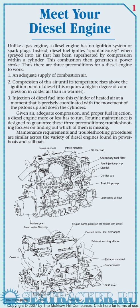 Year: 2007 Language: english Author: Calder N. Genre: Manual Publisher: International Marine/Ragged Mountain Press ISBN: 978-0071474689 Format: PDF Quality: Scanned pages Pages count: 16 Description: When it's sink or swim, this Quick Guide will keep you afloat! On the water, when an engine problem surfaces, there is no time to spend searching through an exhaustive manual. Diesel Engine Care and Repair provides all the answers--fast. Drawn from the world's largest boating library, it presents 14 color panels of authoritative, concise information on diesel engines. This on-the-spot reference is a convenient, accessible, and utterly streamlined information resource. Additional info: About the Author Niger Calder is the author of Marine Diesel Engines (1987, 1991) and Boatowner's Mechanical and Electrical Manual (1989, 1995), the success of which has made him the most sought-after marine how-to writer in the U.S. and U.K. He has published more than 800 magazine articles in SAIL, Cruising World, Ocean Navigator, Yachting World, etc., and lectures on cruising to sell-out crowds. He is also the author of The Cruising Guide to The Northwest Caribbean (IM, 1991) and Cuba: A Cruising Guide (Imray, 1996). He will be testing his newest ideas with his family during a six-month cruise to the Caribbean and South America this winter.