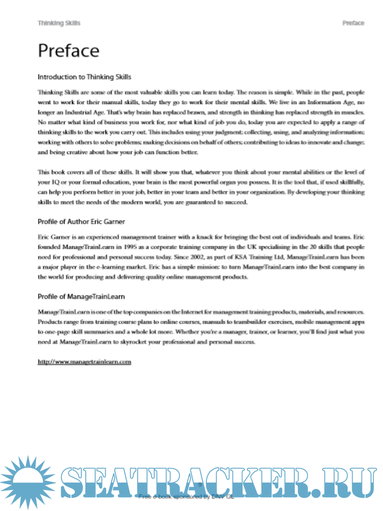 Description: This eBook will cover all kinds of thinking skills and will make you see that your brain is the most powerful organ you possess. It is the tool that, if used skillfully, can help you perform better in your job, better in your team and better in your organization. By developing your thinking skills to meet the needs of the modern world, you are guaranteed to succeed.