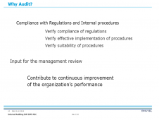 Description: Effective implementation and verification of a (safety) management system require periodical internal audits. The approach to and scope of an audit differs widely from an inspection.