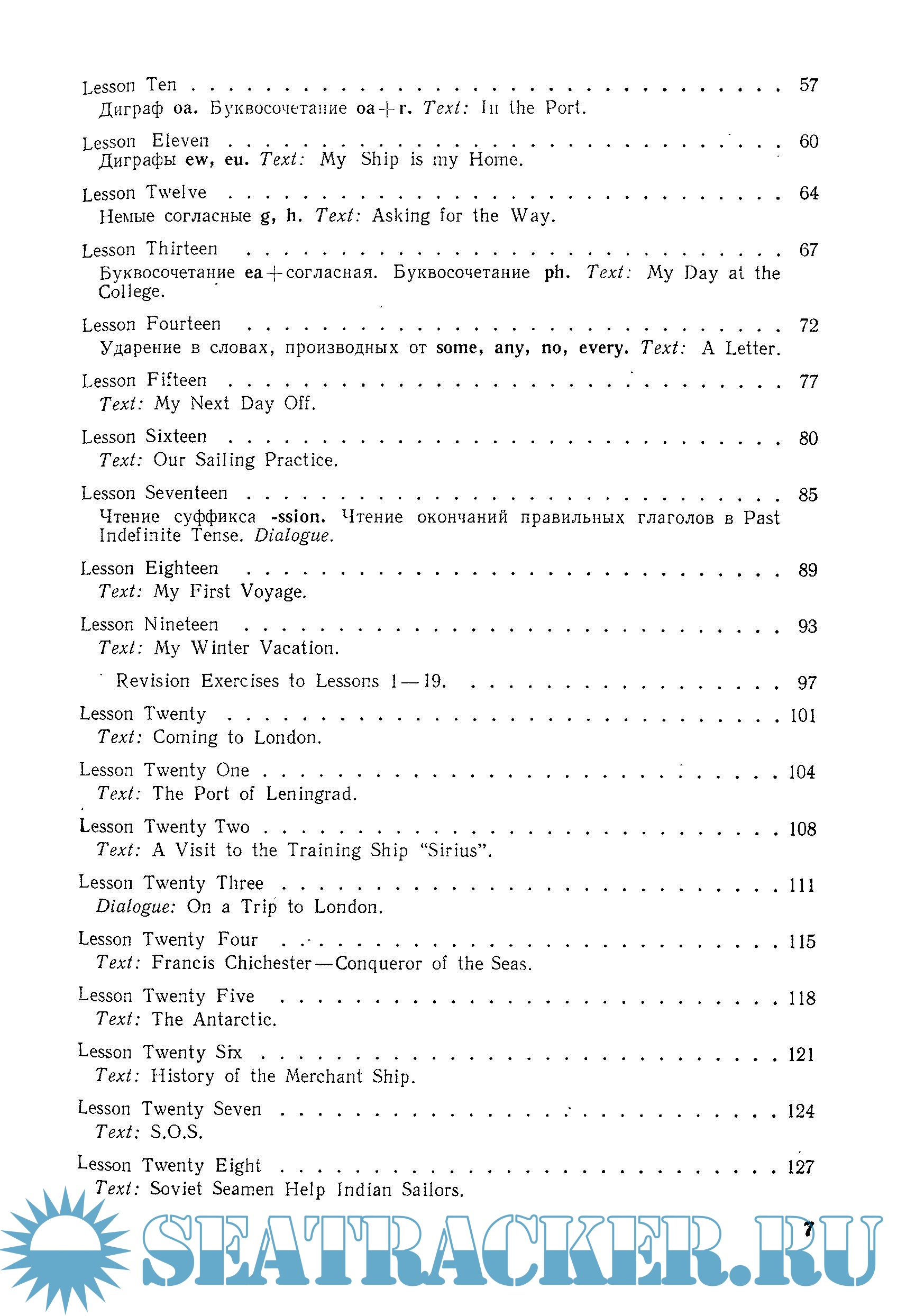 Данный курс английского языка предназначен для лиц, начинающих изучать английский язык в морских училищах. Он может быть использован и продолжающими изучать английский язык. В этом случае в целях более прочного закрепления морской лексики и систематизации грамматического материала рекомендуется пройти более ускоренным темпом материал первых уроков, начав с тех, которые соответствуют уровню знаний учащихся.