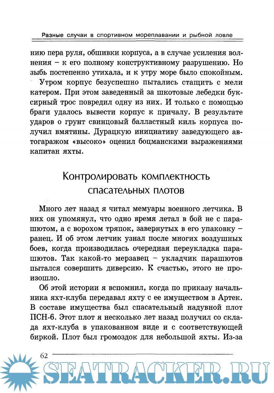 Описание: За много лет занятий яхтингом и любительской рыбной ловлей автору довелось стать свидетелем и участником разных забавных, драматических и трагических случаев на море. Возможно, этот опыт поможет любителям паруса и рыбной ловли избежать ошибок и улучшить свой морской опыт. Ночной прыжок с мачты. Буер. Поражение парусного судна электрическим током. Гибель парусных яхт. Инициативный дурак. Пьянство на яхте. В шторм. Осторожность - залог успешного плавания. Разгильдяй. Безответственность. Гибель людей в Одесском заливе. Ночная встреча с подводной лодкой. Бдительность на вахте. Международная встреча на релинге. Смерч. Брочинг - причина гибели яхт. Встречи с дельфинами. Спасательный плот. Коварное Азовское море.