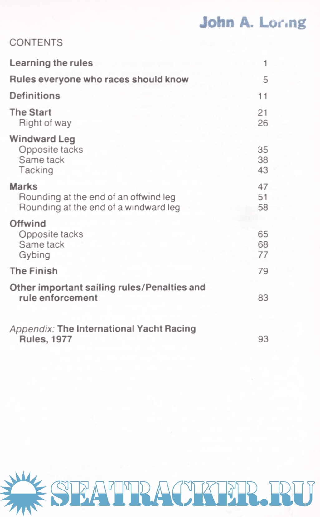 Year: 1981 Language: english Author: Twiname E., Sambrooke-Sturgess G. Genre: Manual Publisher: Sail Books Edition: 2nd ISBN: 0-229-11659-0 Format: PDF Quality: Scanned pages Pages count: 157 Description: The rules of sailing are complex. There’s no getting away from that. But there are ways of making rule knowledge much more accessible and the rules themselves easier to understand. This book is written very much with those two aims in mind. Anyone who races sailing boats needs to know something about the rules. To begin with you only need know enough to get a boat round the course without fouling the others. Later the rules become tactically important because they define what moves you are allowed to make when trying to overtake other boats and, just as important, what tricks other people might legitimately use in trying to overtake you. So the crucial point about learning the sailing rules is that your knowledge needs to be a working knowledge. There is little point in learning the rules merely to be able to quote chapter and verse. That won’t help you on the water, whereas a good working knowledge certainly will, since rule knowledge is a vital department of your racing skills -as important as knowledge of wind and weather. The International Yacht Racing Union’s (lYRU) racing rule book is something most people approach at best reluctantly. For one thing it’s usually only approached at all when you’ve got a problem. Which puts it immediately into the category of garages, police stations and dentists. But with the difference that most times you turn to the rule book you will find something that either you can’t quite understand or that contradicts something you thought you did know. This book therefore approaches the whole problem the other way round, starting from the real live situations that you’re liable to come across while racing. So rather than looking for a rule which might apply to the situation in question, you can turn straight to that situation and read which rule applies, how it applies and why it applies. To make this possible, the situations are arranged here, not to the basic logic of the lYRU rule book, but to a logic based on your perception of situations as you meet them on the water.