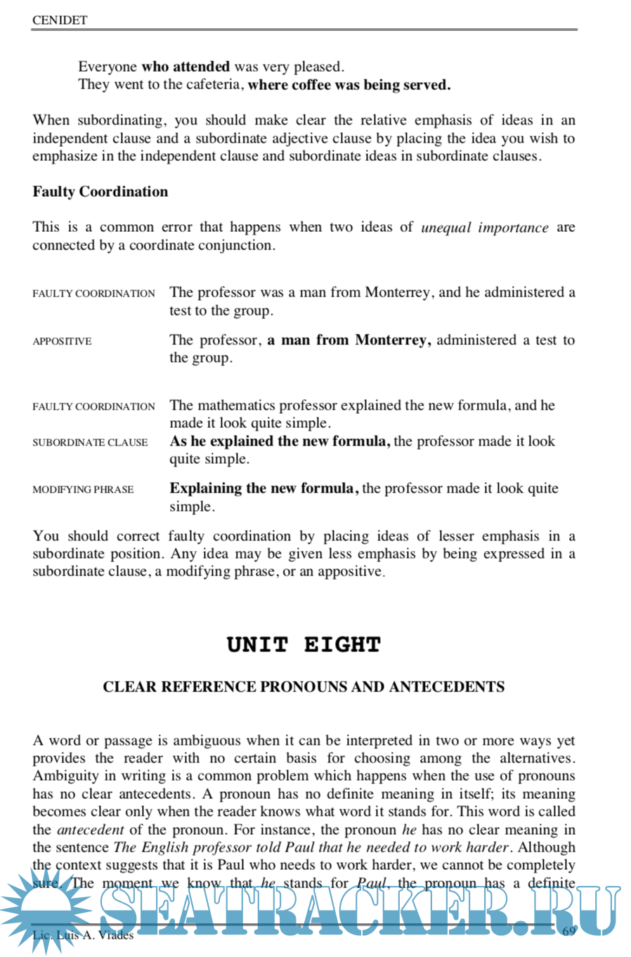 Year: 2002 Language: english Author: Luis Alberto Viades Valencia Genre: Textbook Publisher: CENIDET Edition: 1 Format: PDF Quality: eBook Pages count: 132 Description: The book Teaching Technical English Writing (TTEW) is a long time project that has finally become a reality and will eventually be published in the summer of 2002 sponsored by the DGIT and by CENIDET where I have been working as Head of the English Department since 1988. In most respects TTEW is a response to the following situation. The majority of students who enter CENIDET for post-graduate studies, come from technological institutes modelled on the lack of English instruction during the five years of their first degree. Their previous years of preparatory English instruction were based on structural/behaviorist methodological models. What learners are tought at this level is not a communicative knowledge of English language use, but knowledge of how the syntactic and lexical rules of English operate. The language system is taught, suitably contextualised by means of techniques based on habit formation theory of learning and a structuralist description of English.What students succeed in learning in this way is what is necessary in order to pass examinations. At a post-graduate level they are generally highly conscious of the use they intend to put the foreign language. That use is associated with an occupational, vocational, academic or professional requirement.