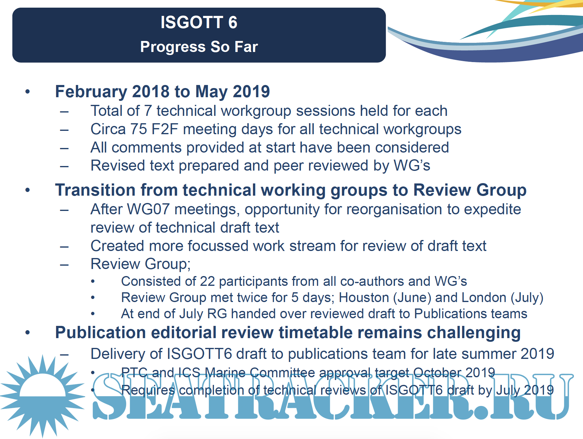 • Co-authors agree to update ISGOTT 5thEdition during 2017
