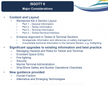 • Safety management best practice updates; e.g. risk assessment, permits to work, enclosed space entry and ship/shore safety checklist.