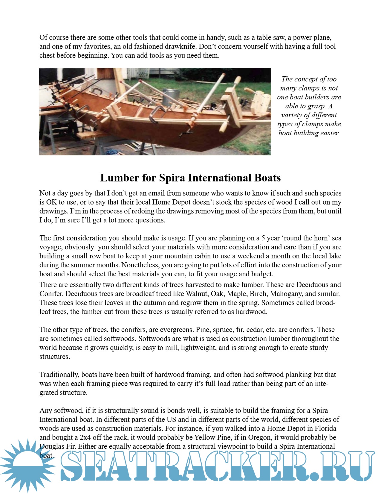 Tools for Spira International Stitch and Glue Boats.Lumber for Spira International Boats.