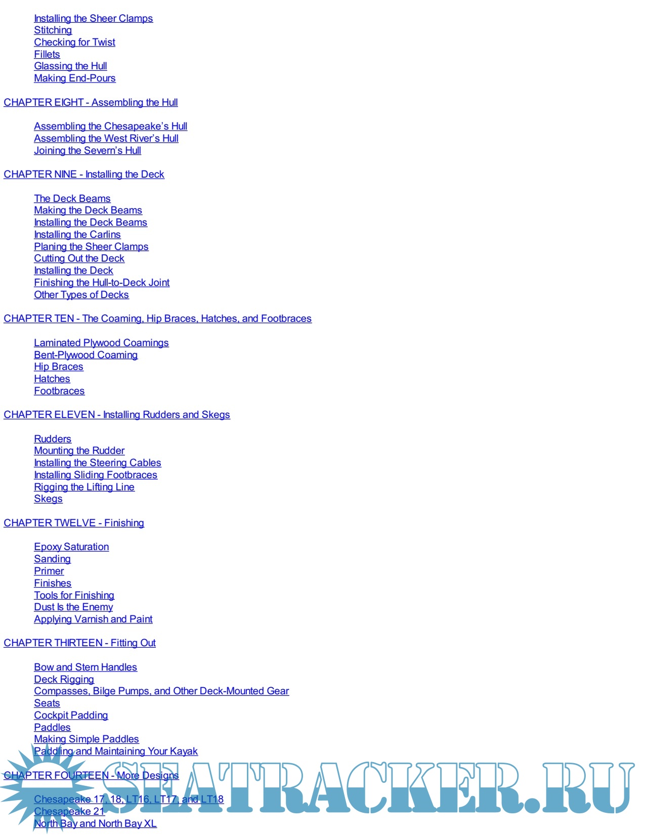 Year: 2000 Language: english Author: Kulczycki C. Genre: Manual Publisher: International Marine/Ragged Mountain Press ISBN: 0071357866 Format: PDF Quality: Scanned pages Pages count: 252 Description: From coast to coast, home boatbuilders have turned to Chris Kulczycki for everything they needed to know about making their own kayaks from high-grade marine plywood and epoxy. In The Kayak Shop, a long-time popular standard, Kulczycki provided explicit directions and plans for building three sea kayaks: a high-performance single, an expedition single, and a touring double. The New Kayak Shop details three new Kulczycki designs that are more elegant and even more suitable for today’s paddlers. The building instructions are also updated, with new sections on paint and varnish, seat construction, power tools, computer programs for amateur designers, and tips on building multi-chine and round-bottom boats. The New Kayak Shop offers the best, most refined designs and building methods in a single, accessible volume.