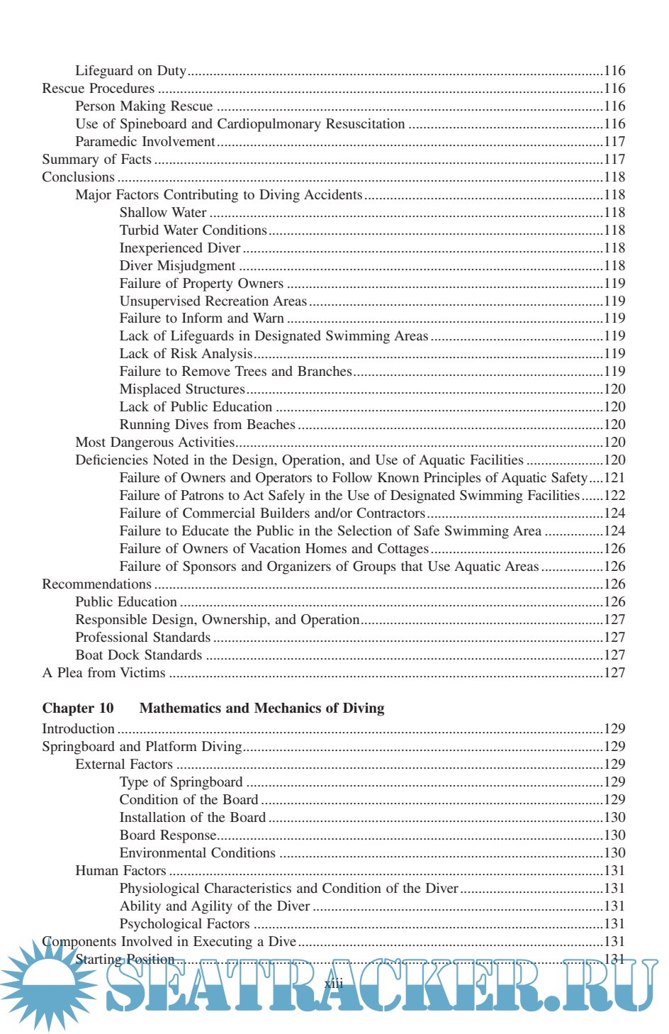 Year: 2000 Language: english Author: Gabrielsen M. Genre: Manual Publisher: CRC Press Edition: 1st ISBN: 0849323703 Format: PDF Quality: Scanned pages Pages count: 273 Description: Diving Injuries: Research Findings and Recommendations for Reducing Catastrophic Injuries represents the most comprehensive study ever done on the problem of spinal cord injuries resulting from diving into water. ng injuries. In it, Dr. Gabrielsen, a renowned expert on the interpretation and presentation of diving-related testimony, discusses injuries sustained in swimming pools, lakes, rivers, and oceans; the laws, standards, and regulations for swimming pool design; and the cost of medical and rehabilitative care for spinal cord injury victims. The book provides a greater understanding of diving safety from all perspectives and is an indispensable reference guide to the safety conscious.