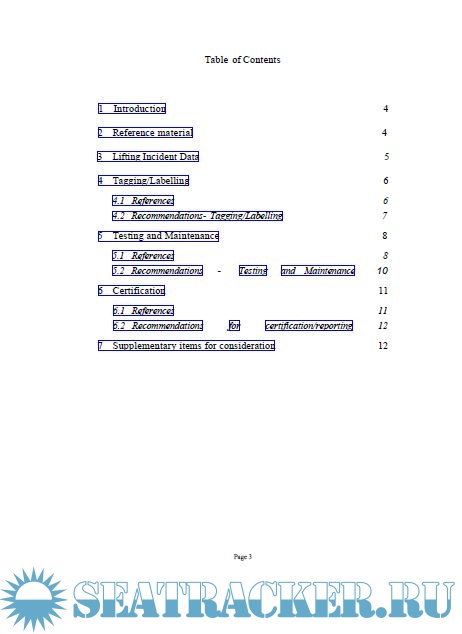 Description: The purpose of the following recommendations is to provide a basis for consideration when drafting internationally applicable and accepted guidelines, to enable builders owners and users of ships lifting equipment to install operate and maintain the equipment in a safe and efficient manner.