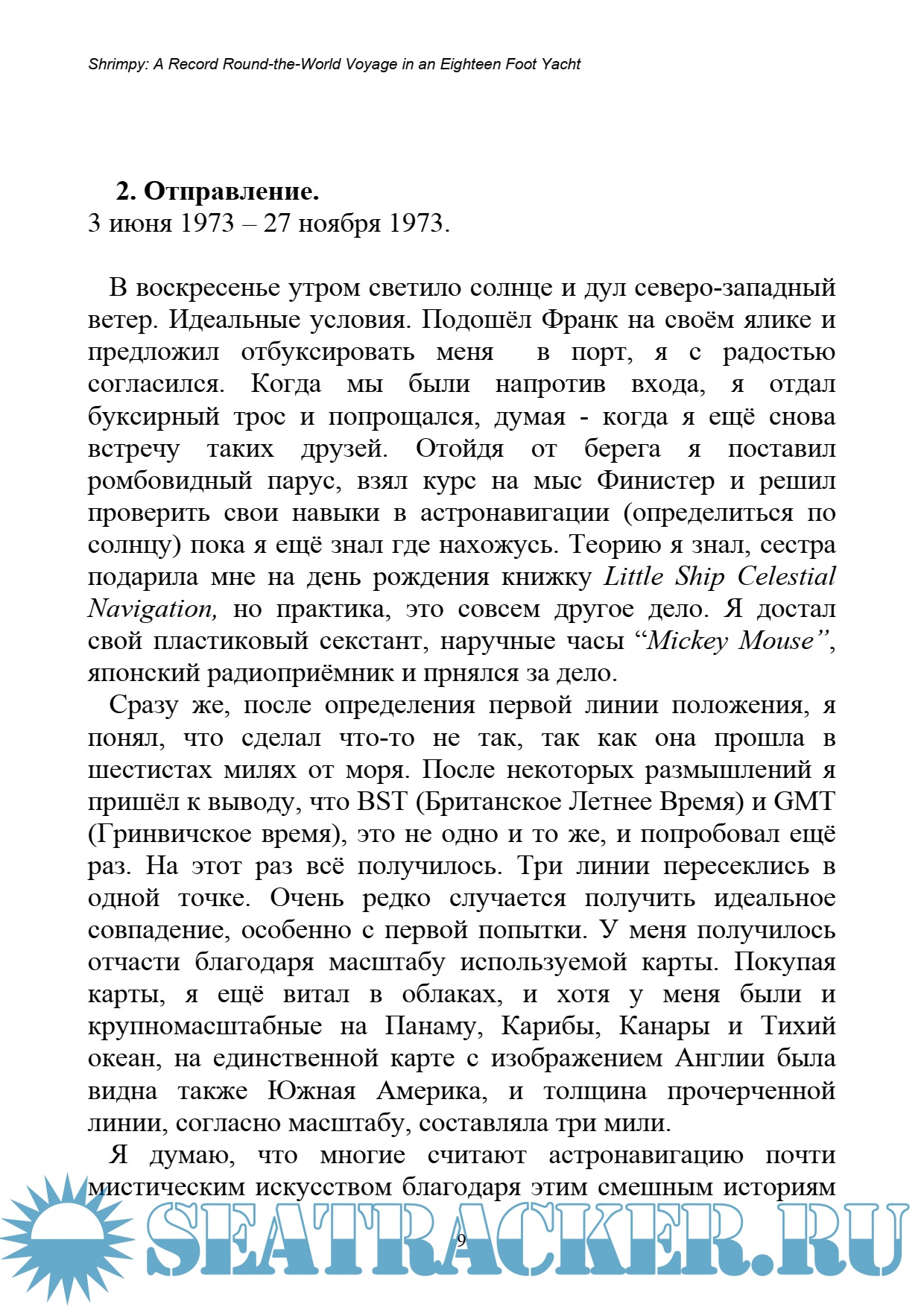 Год выпуска: 200х Язык: русский Автор: Актон Ш. Жанр: История Формат: PDF Качество: Изначально компьютерное (eBook) Количество страниц: 197 Описание: Бывший морской пехотинец, англичанин Шейн Актон, решил, что лучшей возможностью посмотреть мир будет плавание на яхте. Скопив несколько сотен фунтов, он купил маленькую, 18 футовую фанерную лодку и отправился на ней из Кембриджа вокруг света, без денег и минимального опыта. В Панаме он встретил Ирис – девушку из Швейцарии, которая стала его спутницей на протяжении большей части кругосветки. Плавание длилось целых восемь лет и было насыщено самыми невероятными приключениями.