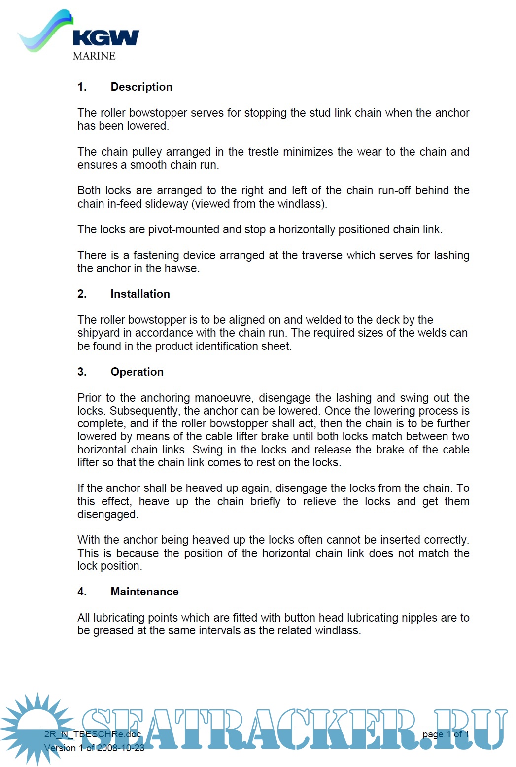 Description: KGW Marine Anchor and Mooring Winch Equipment