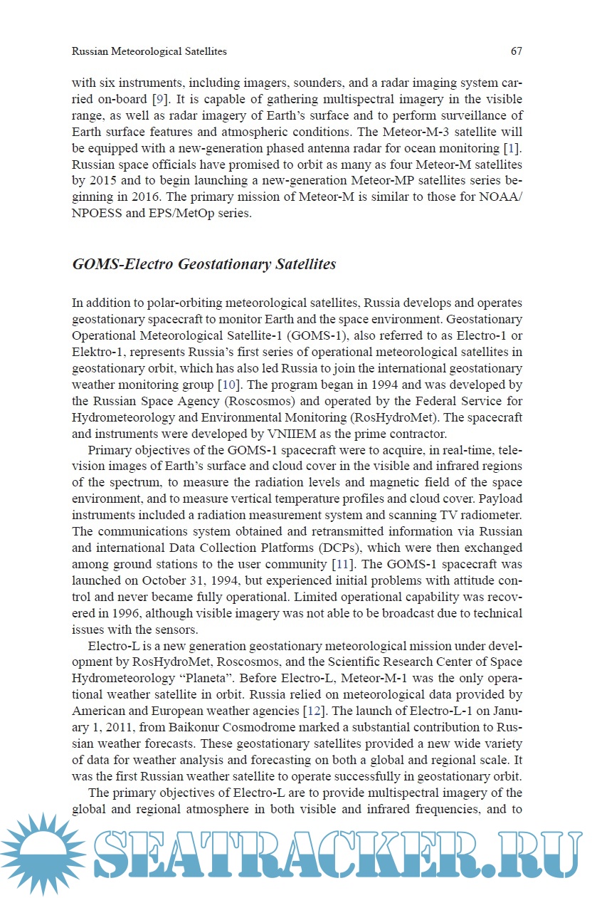 Year: 2014 Language: english Author: Su-Yin Tan Genre: Reference book Publisher: Springer ISBN: 978-1-4614-9420-1 Format: PDF Quality: eBook Pages count: 145 Description: A weather forecast can only be as good as the data that is available. In recent years the bulk of weather data in all environmental domains is acquired by satellite-based instrumentation. “Meteorological Satellite Systems” is a reference on weather satellites and their Earth applications, and a tool for students, engineers, scientists ad teachers. The book reviews developments and recent advancements in GEO and polar orbiting meteorological satellites. It explores the evolution of these technologies and their capabilities to monitor short- and long-term changes in weather patterns. The satellite systems of the main countries (U.S., Europe, Russian, Chinese, Japanese, Indian) are reviewed, as well as international efforts to coordinate meteorological data collection and sharing are discussed.