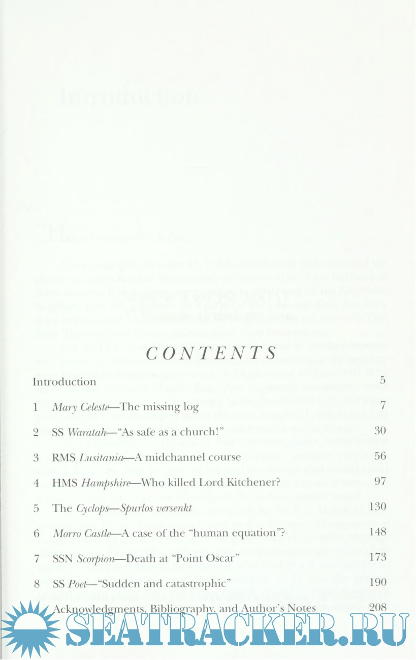 Year: 1999 Language: english Author: Hoehling A.A. Genre: History Publisher: Thomas Nelson ISBN: B007V8WS6I Format: PDF/EPUB Quality: eBook Pages count: 228 Description: Lost at Sea features the incredible stories of eight ships and their passengers, some of which vanished with hardly a trace - or no trace at all. Veteran history and mystery writer A.A.Hoehling explores these previously unexplained maritime mishaps with the skill of a detective seeking to uncover a murderer.
