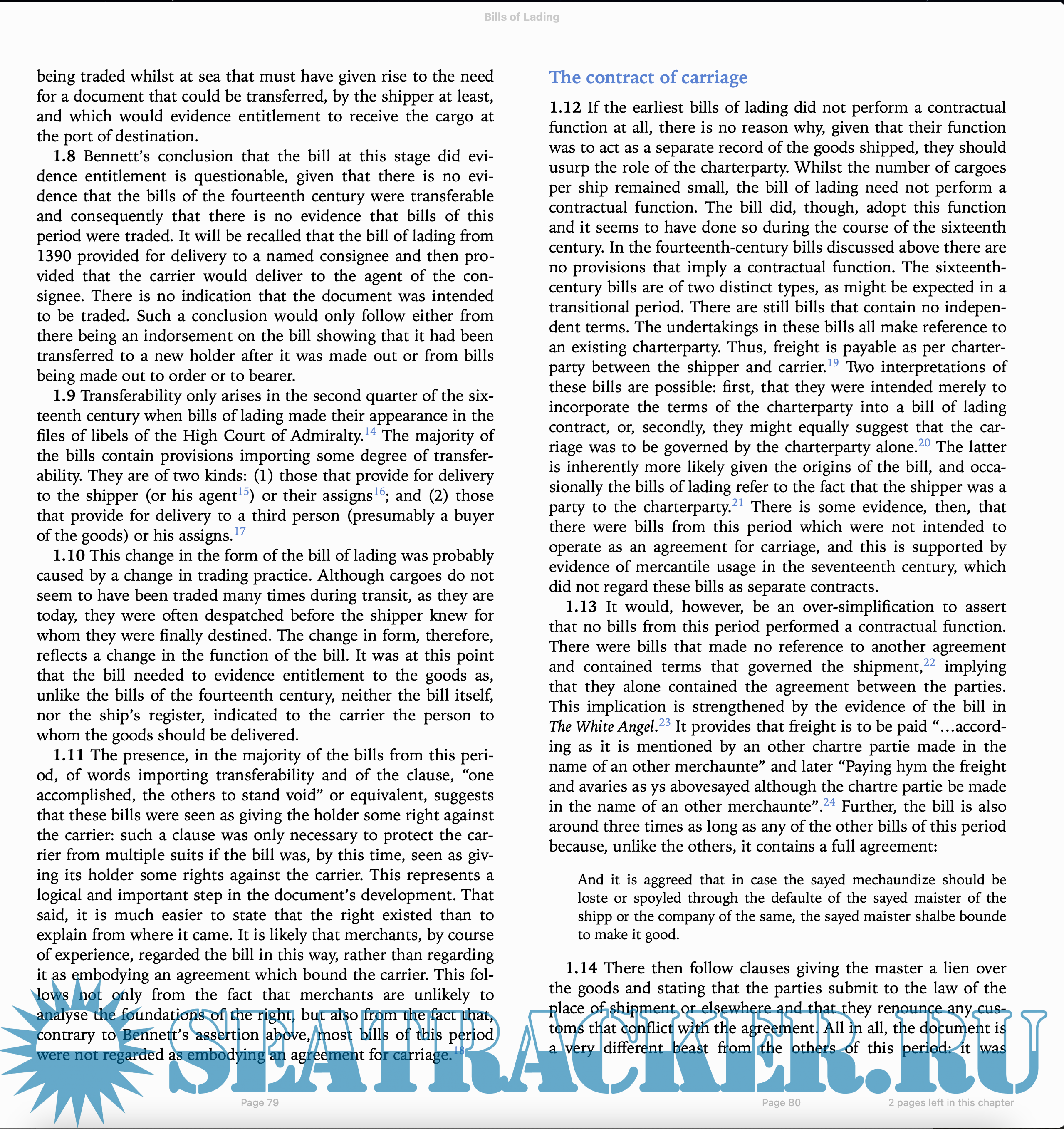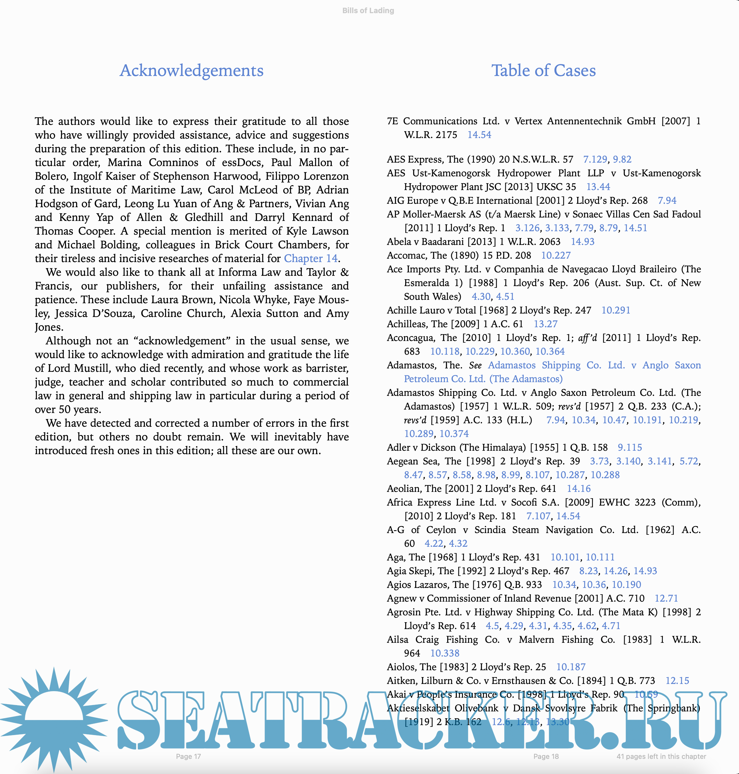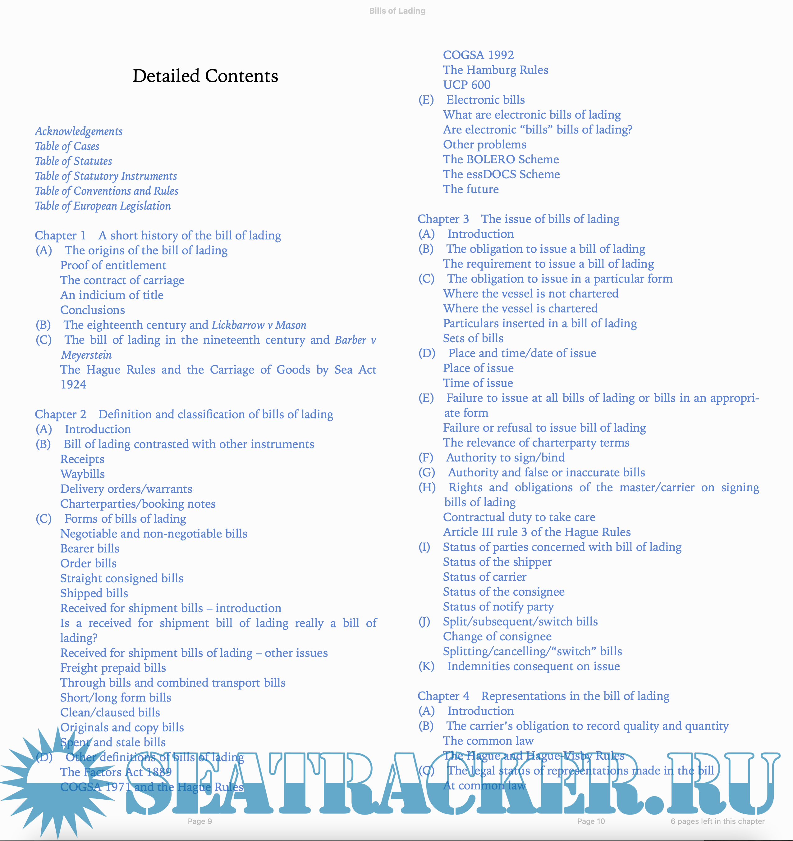 Year: 2016 Language: english Author: Aikens, Richard, Lord, Richard, Bools, Michael. Genre: Textbook Publisher: Informa Law Edition: 2nd ISBN: 978-1-315-75087-3 Format: EPUB Quality: eBook Pages count: 756 Description: “The common law relating to bills of lading has evolved over many centuries; and as in any such evolutionary process there have been periods of rapid change and periods of relative quiet. The nine years since the first edition of this book constitute a relatively undramatic, if busy period, with many decisions handed down but few likely to have had the maritime lawyer or shipowner choking over their cornflakes. A similar picture emerges on the regulatory and statutory front. With only one short piece of English legislation (the 1855 Bills of Lading Act) prior to COGSA 1924, then a rash of two statutes within only about 20 years of each other (COGSAs 1971 and 1992) it is unsurprising, even in an increasingly regulated world, that nothing of real practical importance in terms of substantive law has emerged since. We stress the word “practical” because of course it is hard to overestimate the potential impact and importance of the Rotterdam Rules. Rightly or wrongly we have taken the view that they will have no practical impact on the work of the English lawyer during any reasonably foreseeable lifetime of this edition, even allowing for the customary authorial breaches of the[…]”