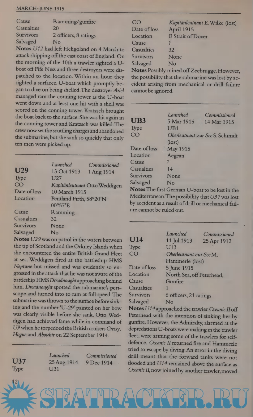 Year: 1999 Language: english Author: Kemp P. Genre: History Publisher: Arms @ Armour Edition: 2nd ISBN: 1-85409-515-3 Format: PDF Quality: Scanned pages Pages count: 292 Description: In both World Wars I and II, the German U-boat was the Allies' scourge, and in the latter conflict it very nearly won the day for the Nazis. Over a thousand of these powerful ships were destroyed in air and seaborne attacks, by surface vessels and submarines, in tough head-to-head encounters, chance meetings, and after extensive chases and hunts. Here is unprecedented detail of these sinkings and obliterations, of casualties on a massive scale, and of a victory hard-won. Additional info: