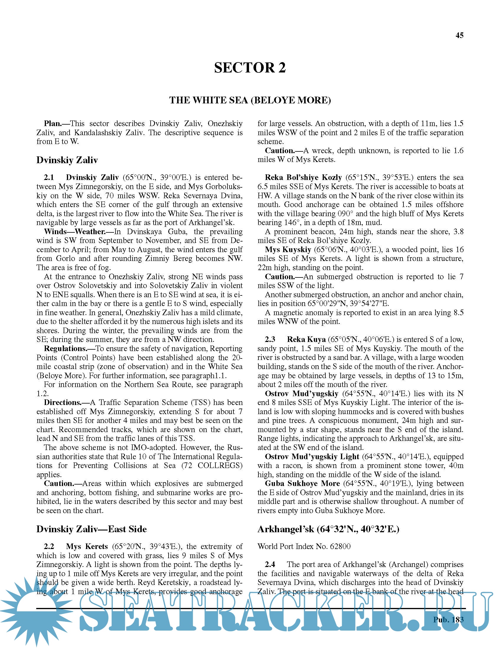 Sailing Directions (Planning Guides) include relevant physical, political, industrial, navigational and regulatory information about the countries adjacent to a particular ocean basin in a single volume. The downloadable publication files include updates affecting the current edition, if any.