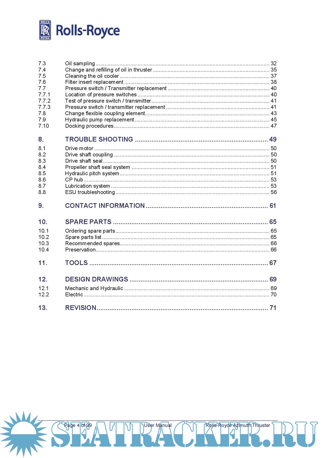 Description: The User manual provides the information necessary to operate and maintain the Rolls-Royce Azipull Thruster safely and correctly and must always be available to the technical staff.
