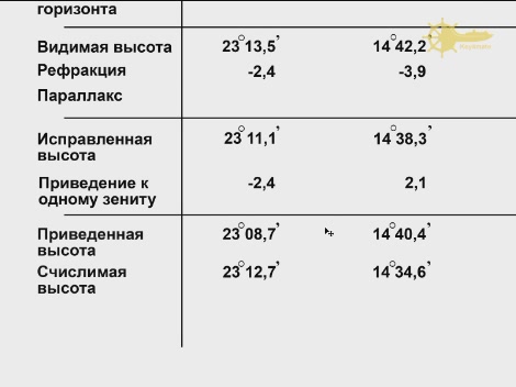 -Расчет высоты и азимута светила по Norie’s Tables (Alphecca);