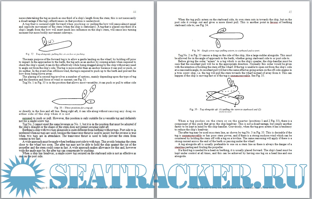 Description: Explains many fundamental principles of ship handling as applied to berthing, unberthing, passing and anchoring. The advantages and disadvantages of motor ships, steamers are explained. Particular attention has been given to the effective placement and use of tugs in various situations and there is a summary of developments in tug propulsion from single screw to tractor.