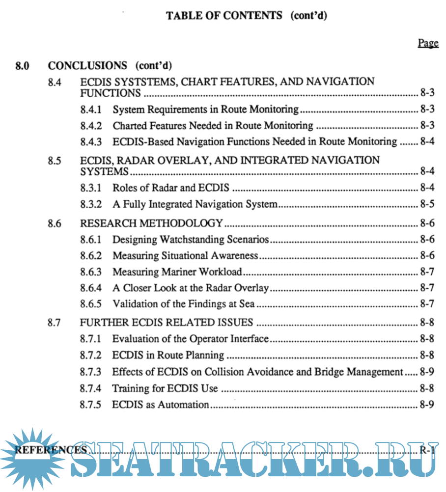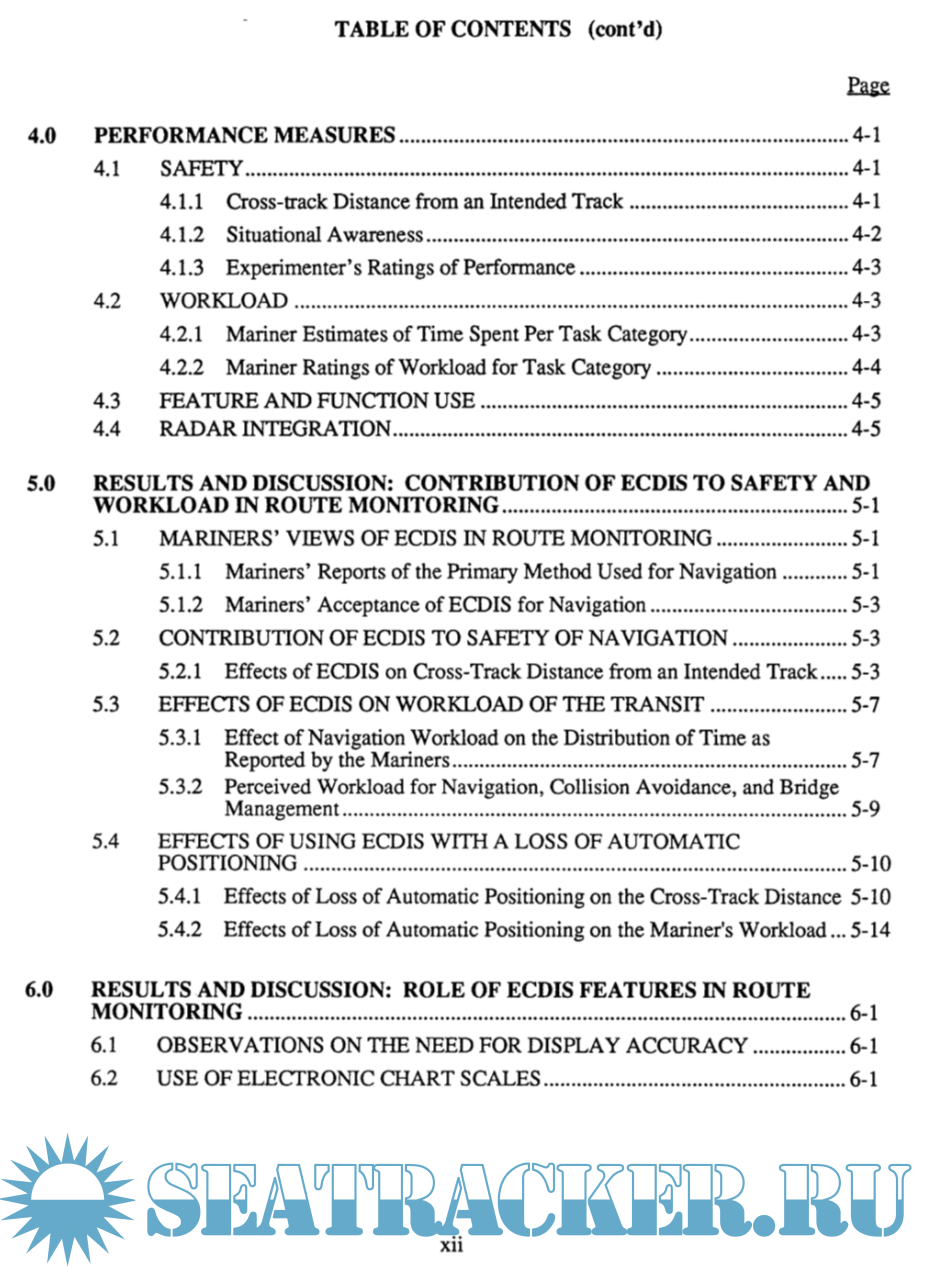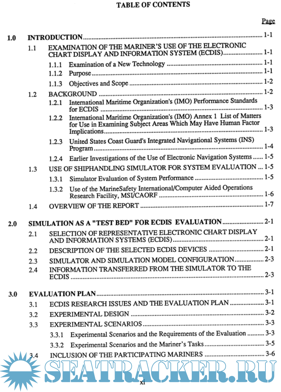 Year: 1995 Language: english Author: M.W. Smith et alli Genre: Research papers Publisher: U.S. Department of Transportation United States Coast Guard Office of Engineering, Logistics, and Development Format: PDF Quality: Unknown Pages count: 199 Description: This report describes a study done to examine the contributions that ECDIS might make to the operational practices on the commercial bridge. Issues examined were: the contribution to the safety of navigation, the effect on the navigational workload, the features required during route monitoring, and the potential contribution of integration with radar. Two commercially-available ECDIS devices were installed on the simulator bridge at MSI/CAORF. Expert mariners made repeated port arrivals and departures. A variety of ship and mariner performance measures were collected and extensive debriefings were conducted. ECDIS demonstrated the potential to increase safety, primarily by decreasing the cross track distance from a planned track, and the potential to decrease the workload of route monitoring, primarily by replacing time-consuming plotting on the paper chart. For route monitoring, mariners required only a simple display outlining safe water, but recommended access to a larger set of chart features as reference. Radar integration, as implemented on the devices used, did not provide the ARPA information mariners required.
