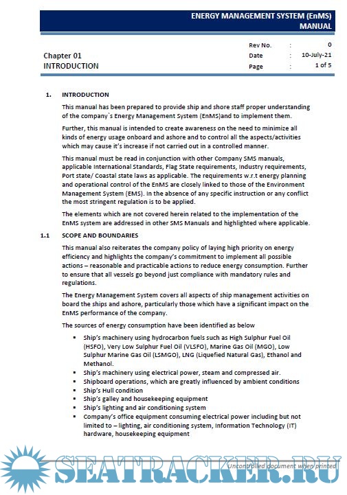 Description: This manual is intended to create awareness on the need to minimize all kinds of energy usage onboard and ashore and to control all the aspects/activities which may cause it’s increase if not carried out in a controlled manner.