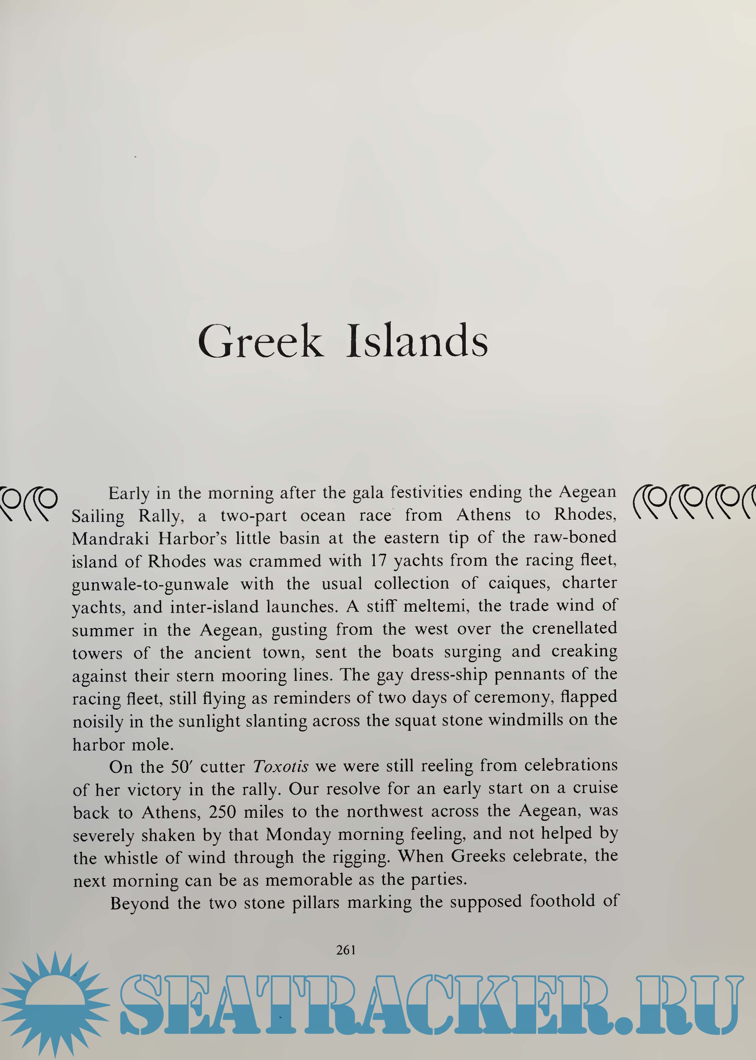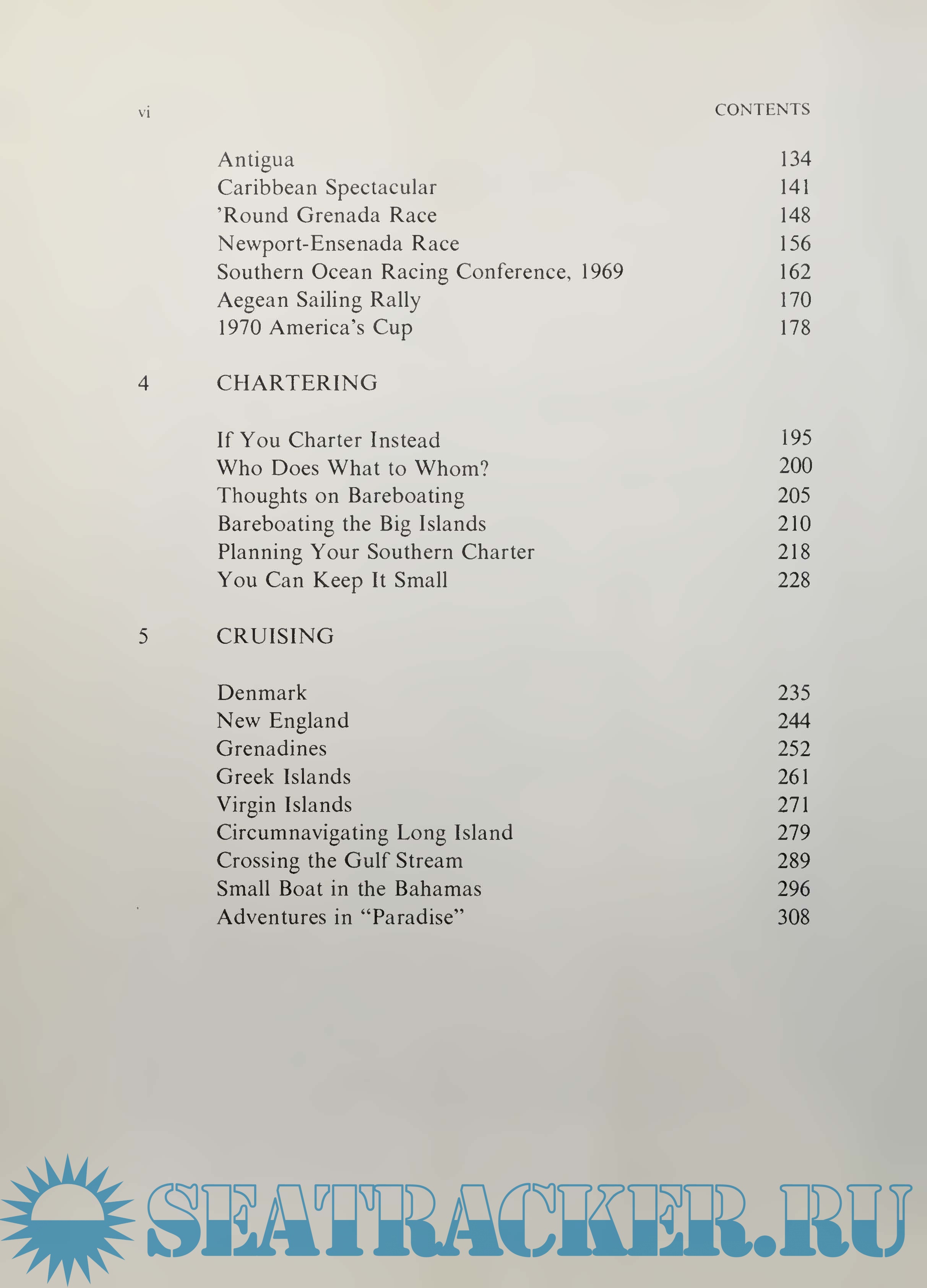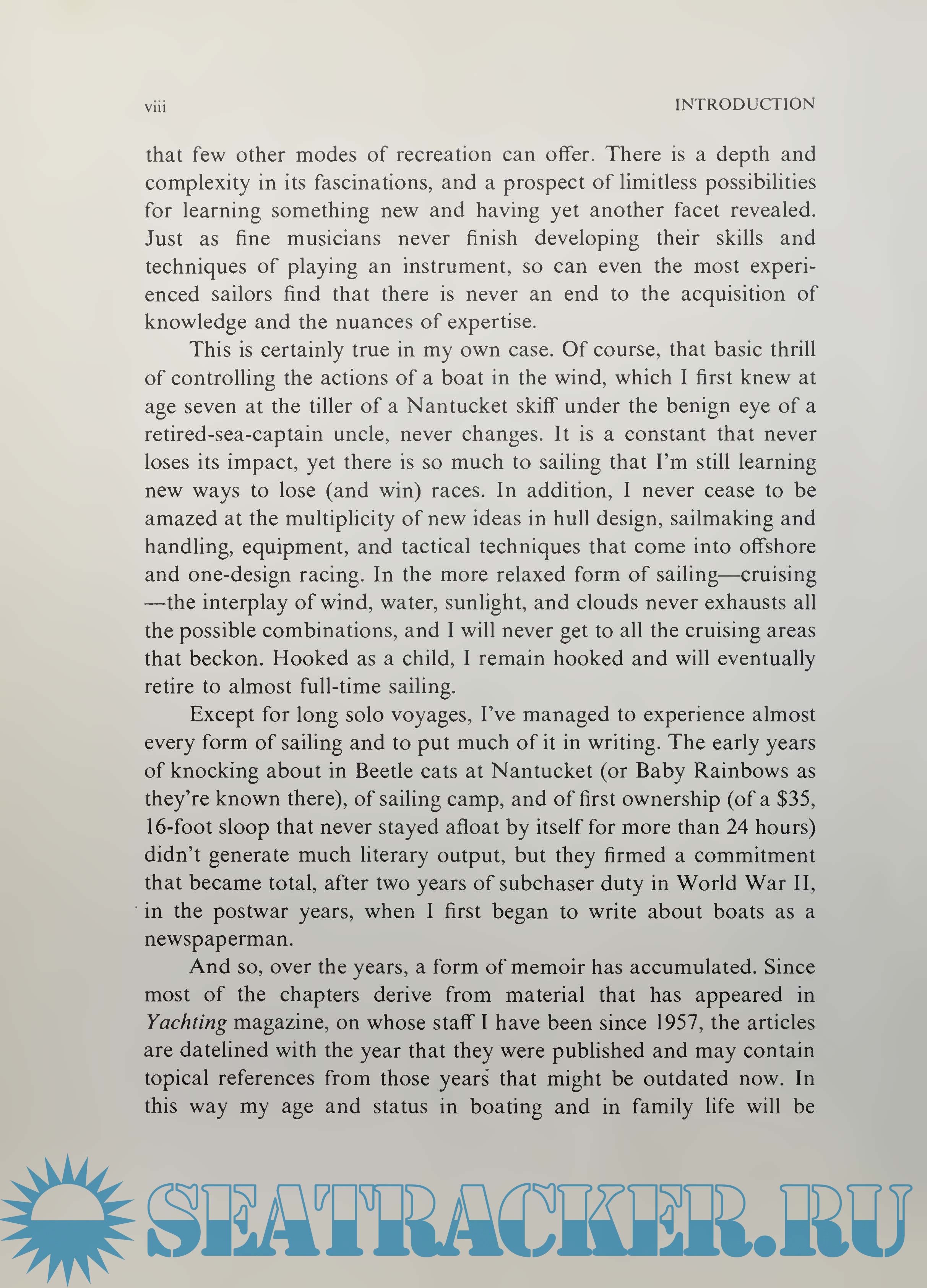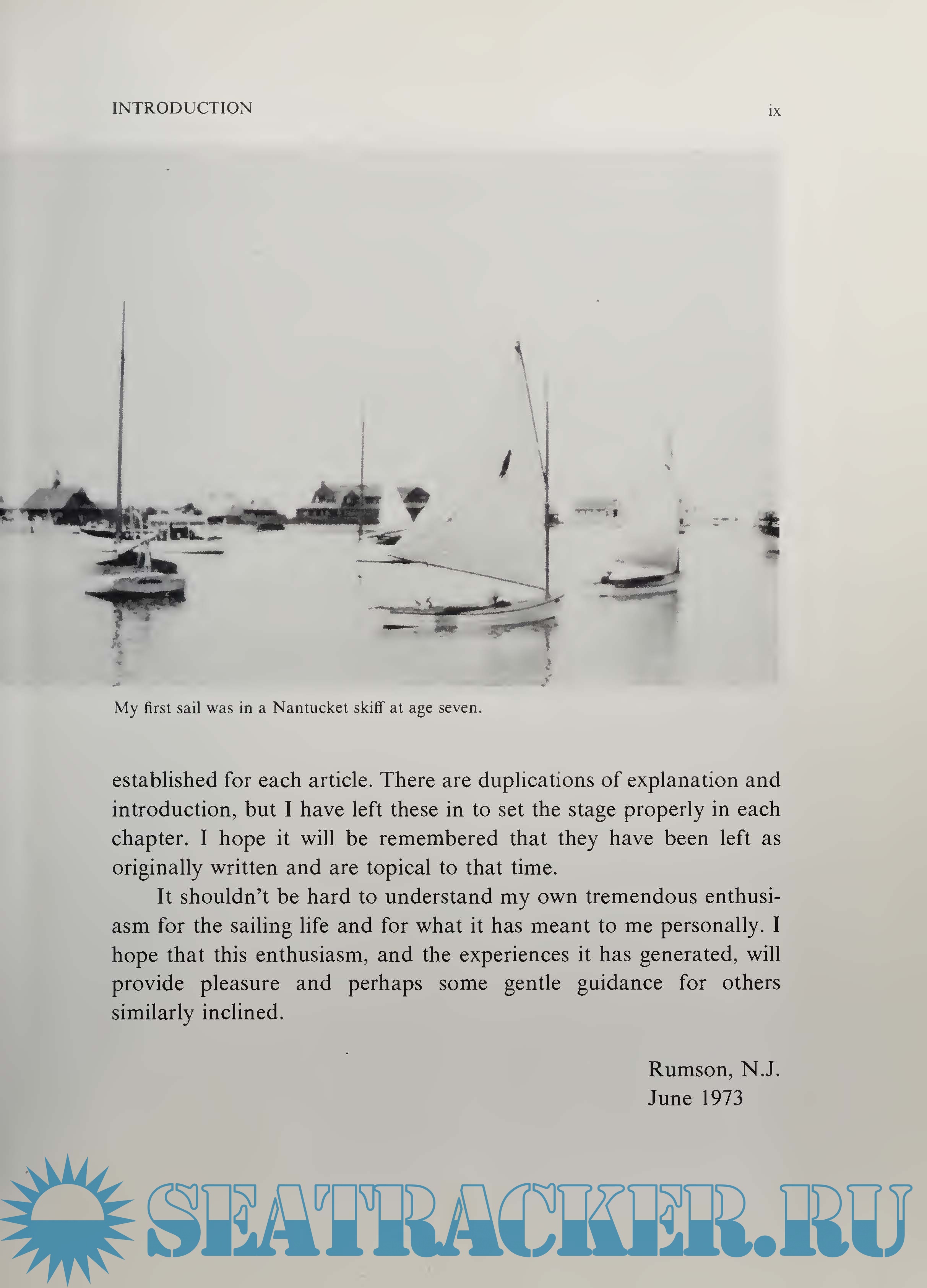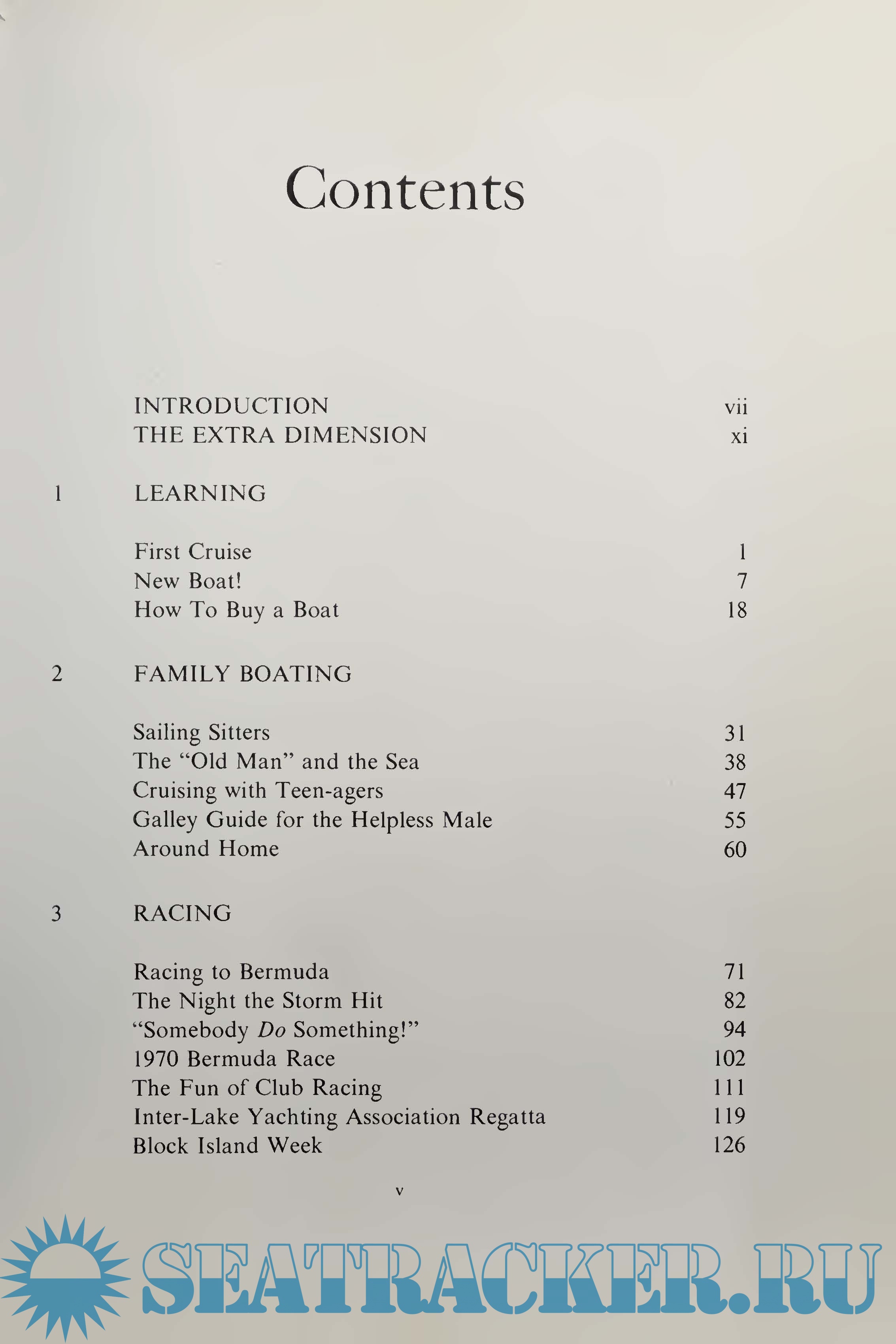 Here, in summing up the joys of a sailing life, he offers help and guidance for the beginner and for those thinking about taking up the sport, and relates experiences saltier sailors will recognize and identify with. He covers fundamentals such as how and why to buy a boat, and that first cruise; family boating, or getting everybody afloat, including wives, young children, and teenagers; racing—from the Carib¬ bean and Aegean to Put-in-Bay, Ohio, and Rhode Island Sound; chartering with a professional crew, on a bareboat basis, in exotic waters; cruising, the good life that can be lived in the waters of Denmark or New England, South America or the Gulf Stream.