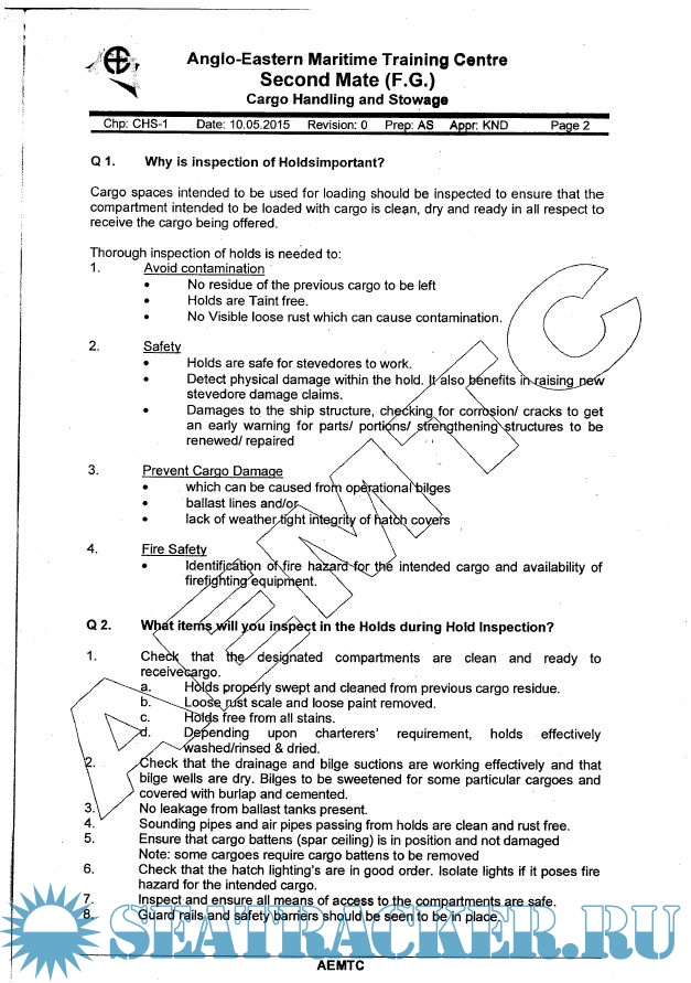 Second Mates FG Course Handout: Cargo Handling and Stowage Questions and Answers - AEMTC [2018, PDF]