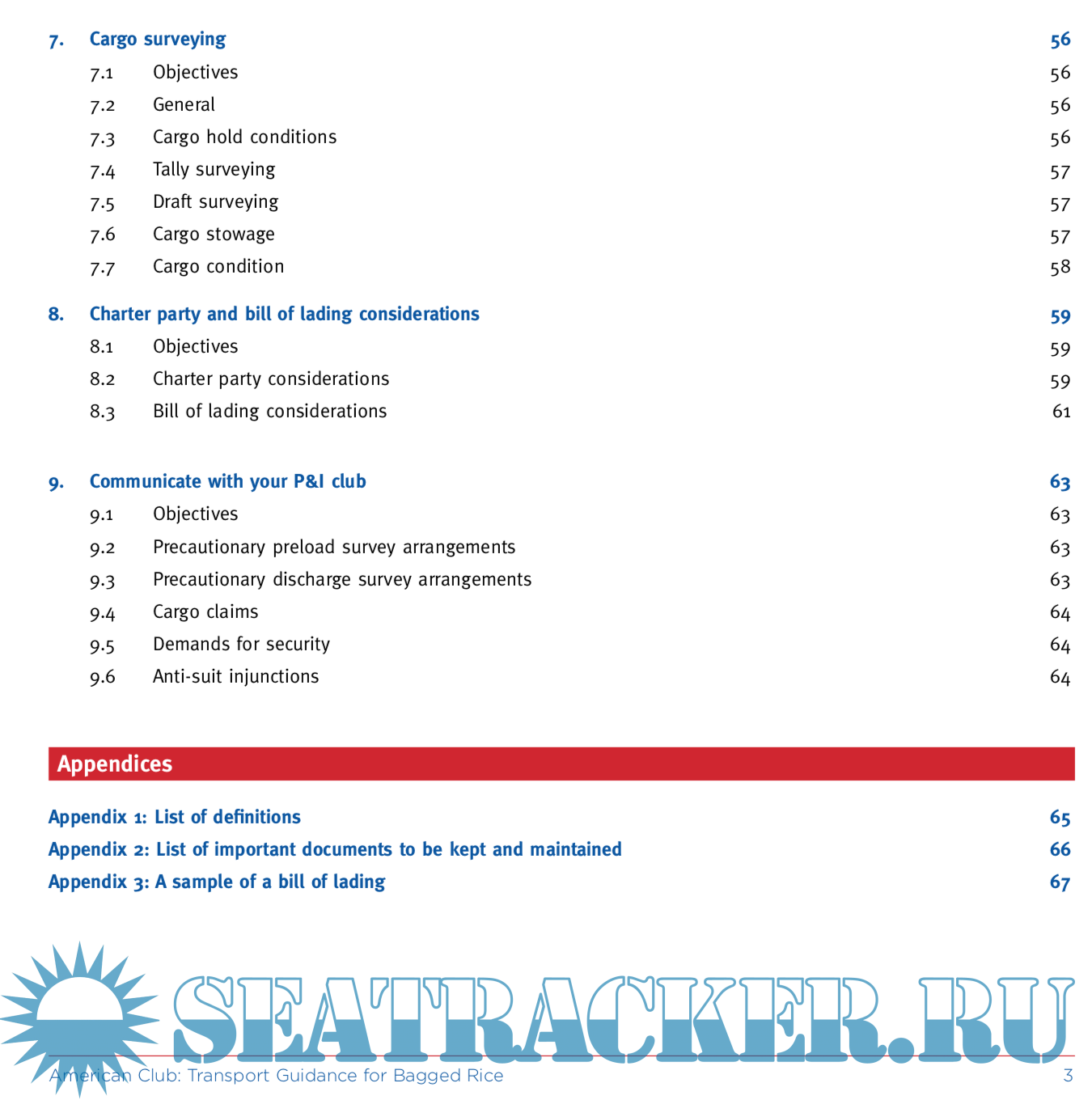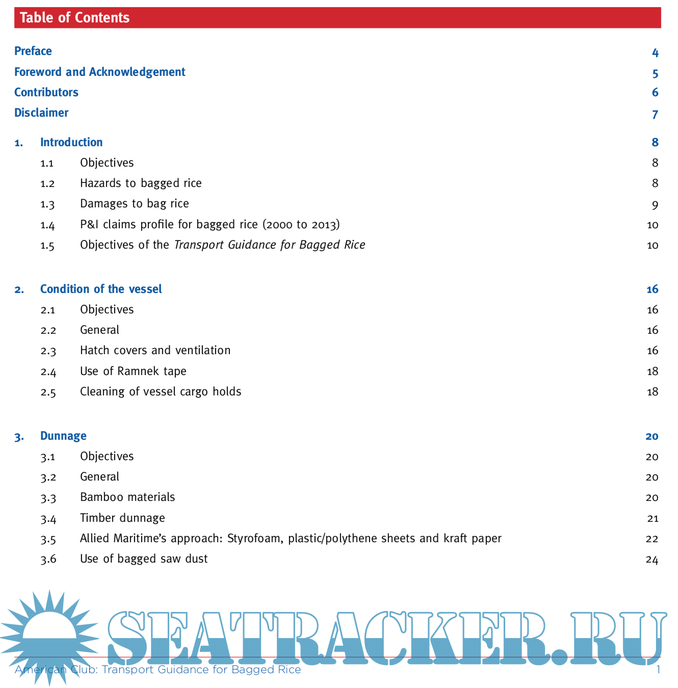 Transport Guidance for Bagged Rice draws upon the knowledge and experience which The American Club has derived from its own claims, from those who are engaged in the operation and/or chartering of ships for the carriage of bagged rice, and from surveyors whose professional experience on behalf of P&I insurers, and from owners and charterers alike.