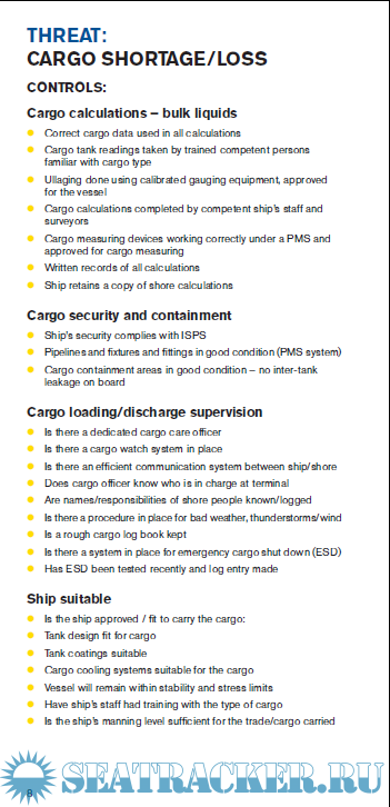 It will allow you to carry out a similar check on the Threats and Controls and make sure the vessel has a good risk profile.