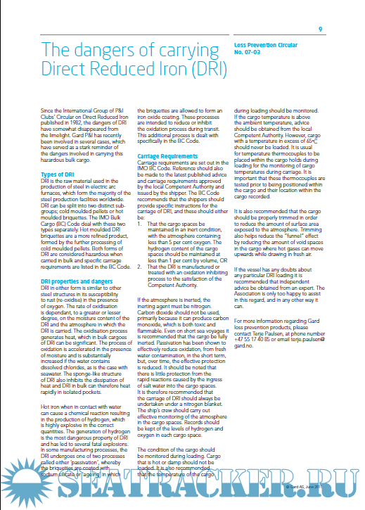 GARD PI - Dangerous solid cargoes in bulk DRI - nickel and iron ores