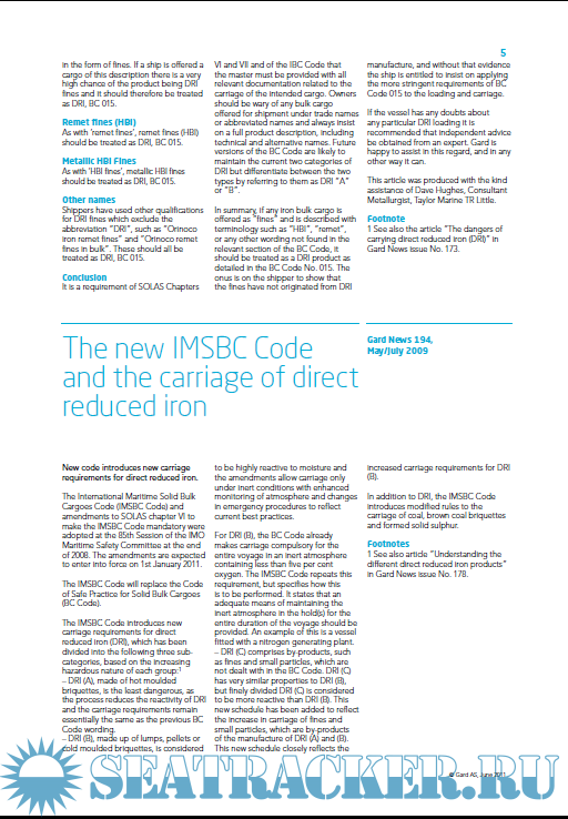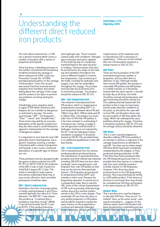 Dangerous solid cargoes in bulk DRI, nickel and iron ores, A selection of articles previously published by Gard AS - Gard P&I [2014, PDF]