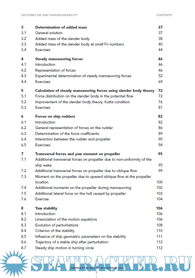 Year: 2019 Language: english Author: Prof. Dr.-Ing. habil. Nikolai Kornev Publisher: Bookboon learning Edition: 1st ISBN: 978-87-403-0559-3 Format: PDF Quality: eBook Pages count: 181 Description: This book is written on the base of a lecture course taught by the author at the Faculty of Mechanical Engineering and Marine Technology at the Rostock University in Germany. The course contains fourteen lectures which include main principles of ship manoeuvrability. Experimental, theoretical and numerical methods used in the ship theory are presented in a clear and simple form. Each chapter is supplied with exercises which can be solved either analytically or using software provided by the author. An optional chapter is devoted to wing in ground effect dynamics. The only prerequisite for the course is the knowledge of general fluid dynamics.