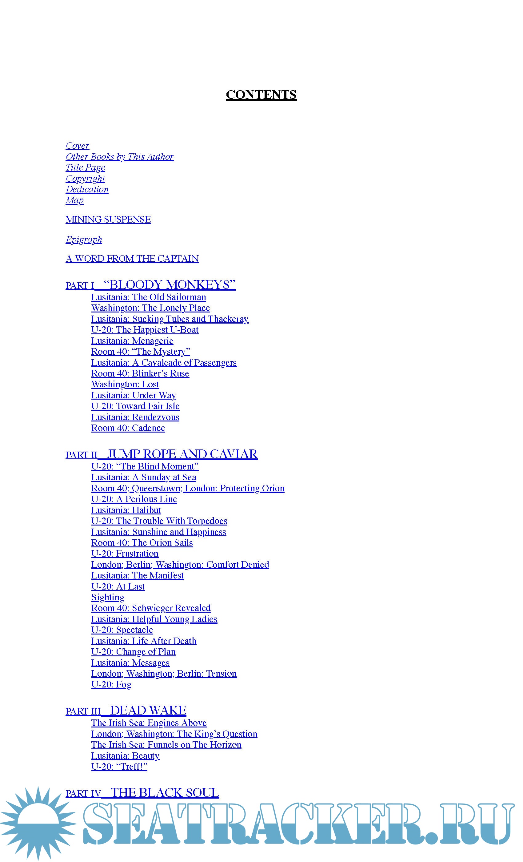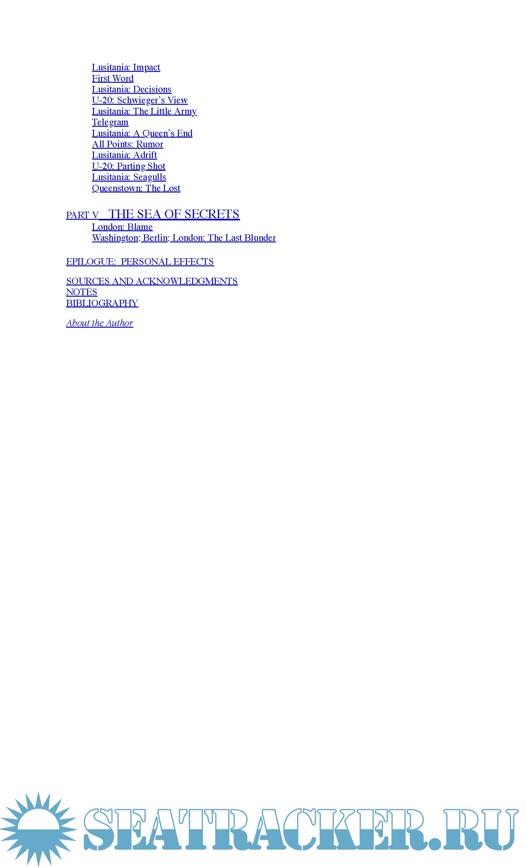 Year: 2016 Language: english Author: Erik Larson Publisher: Crown Edition: Reprint edition Format: PDF/EPUB Quality: eBook Pages count: Multiple (313 for .pdf) Description: On May 1, 1915, with WWI entering its tenth month, a luxury ocean liner as richly appointed as an English country house sailed out of New York, bound for Liverpool, carrying a record number of children and infants. The passengers were surprisingly at ease, even though Germany had declared the seas around Britain to be a war zone. For months, German U-boats had brought terror to the North Atlantic. But the Lusitania was one of the era’s great transatlantic “Greyhounds”—the fastest liner then in service—and her captain, William Thomas Turner, placed tremendous faith in the gentlemanly strictures of warfare that for a century had kept civilian ships safe from attack. It is a story that many of us think we know but don’t, and Erik Larson tells it thrillingly, switching between hunter and hunted while painting a larger portrait of America at the height of the Progressive Era. Full of glamour and suspense, Dead Wake brings to life a cast of evocative characters, from famed Boston bookseller Charles Lauriat to pioneering female architect Theodate Pope to President Woodrow Wilson, a man lost to grief, dreading the widening war but also captivated by the prospect of new love. :