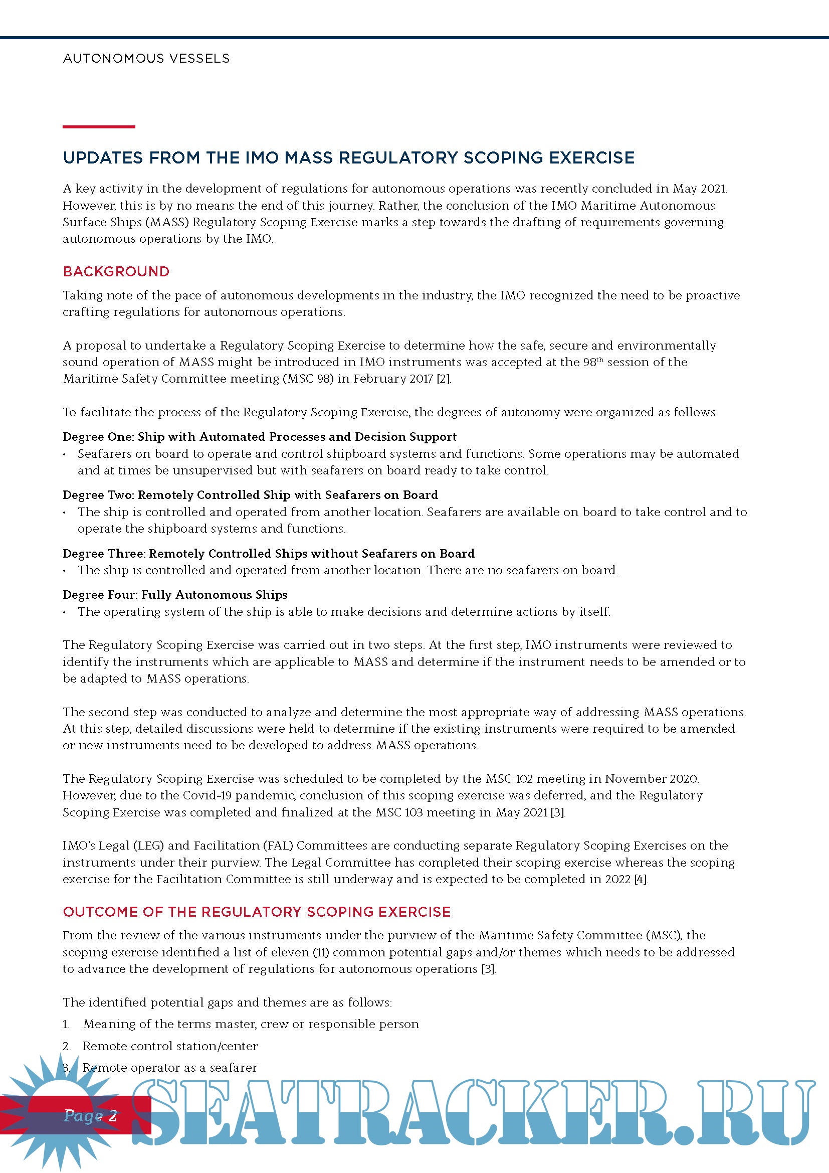 concluded the Maritime Autonomous Surface Ships (MASS) Regulatory Scoping Exercise.