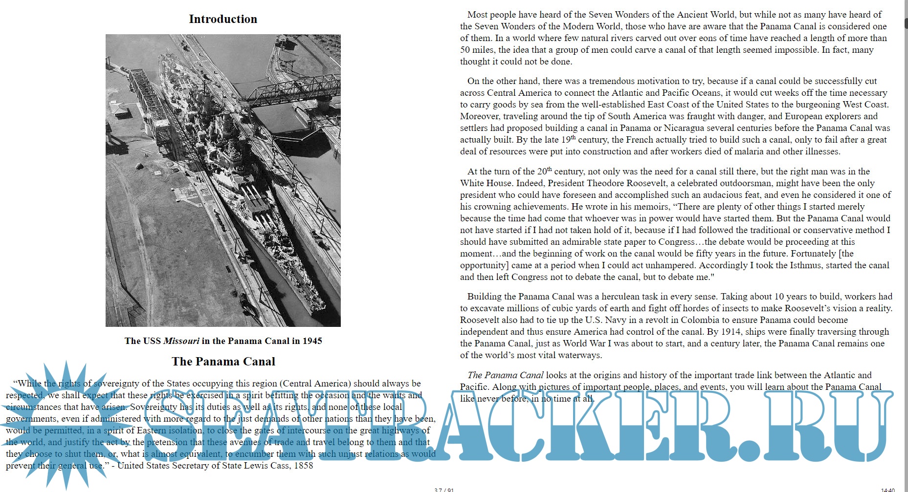 Year: 2014 Language: english Author: Charles River Editors Genre: History Format: EPUB Quality: eBook Pages count: 91 Description: Most people have heard of the Seven Wonders of the Ancient World, but while not as many have heard of the Seven Wonders of the Modern World, those who have are aware that the Panama Canal is considered one of them. In a world where few natural rivers carved out over eons of time have reached a length of more than 50 miles, the idea that a group of men could carve a canal of that length seemed impossible. In fact, many thought it could not be done. On the other hand, there was a tremendous motivation to try, because if a canal could be successfully cut across Central America to connect the Atlantic and Pacific Oceans, it would cut weeks off the time necessary to carry goods by sea from the well-established East Coast of the United States to the burgeoning West Coast. Moreover, traveling around the tip of South America was fraught with danger, and European explorers and settlers had proposed building a canal in Panama or Nicaragua several centuries before the Panama Canal was actually built. By the late 19th century, the French actually tried to build such a canal, only to fail after a great deal of resources were put into construction and after workers died of malaria and other illnesses. At the turn of the 20th century, not only was the need for a canal still there, but the right man was in the White House. Indeed, President Theodore Roosevelt, a celebrated outdoorsman, might have been the only president who could have foreseen and accomplished such an audacious feat, and even he considered it one of his crowning achievements. He wrote in his memoirs, “There are plenty of other things I started merely because the time had come that whoever was in power would have started them. But the Panama Canal would not have started if I had not taken hold of it, because if I had followed the traditional or conservative method I should have submitted an admirable state paper to Congress…the debate would be proceeding at this moment…and the beginning of work on the canal would be fifty years in the future. Fortunately [the opportunity] came at a period when I could act unhampered. Accordingly I took the Isthmus, started the canal and then left Congress not to debate the canal, but to debate me." Building the Panama Canal was a herculean task in every sense. Taking about 10 years to build, workers had to excavate millions of cubic yards of earth and fight off hordes of insects to make Roosevelt’s vision a reality. Roosevelt also had to tie up the U.S. Navy in a revolt in Colombia to ensure Panama could become independent and thus ensure America had control of the canal. By 1914, ships were finally traversing through the Panama Canal, just as World War I was about to start, and a century later, the Panama Canal remains one of the world’s most vital waterways. The Panama Canal looks at the origins and history of the important trade link between the Atlantic and Pacific. Along with pictures of important people, places, and events, you will learn about the Panama Canal like never before, in no time at all. Additional info: Charles River Editors is a boutique digital publishing company, specializing in bringing history back to life with educational and engaging books on a wide range of topics.