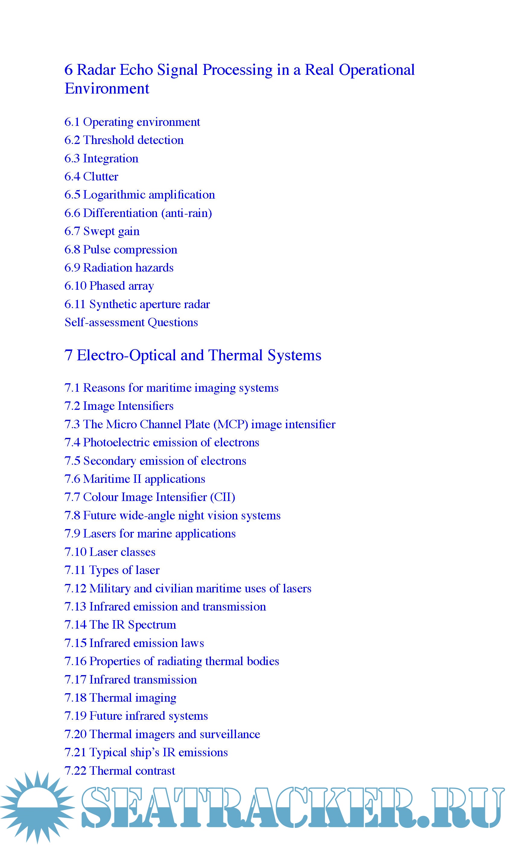 Year: 2017 Language: english Author: Christopher Lavers Genre: Other Publisher: Thomas Reed Edition: 1st June 6, 2017 ISBN: 9781472922205 Format: EPUB/PDF/AZW Quality: eBook Pages count: 256 Description: Reeds Introductions: Essential Sensing and Telecommunications for Maritime Applications covers all fundamental and essential theoretical maritime physics principles which underpin modern marine sensors and telecommunications devices as needed by marine users, such as those in the navy, coastguard, merchant shipping, and users of pleasure craft. For safety at sea, it is vital that maritime users have at least a basic understanding of the key concepts upon which many essential modern sea-going sensors and communications devices now operate. Knowledge regarding electromagnetic waves and electromagnetic devices is an established merchant navy sea service requirement, particularly for the Standards in Training and Certification in Watchkeeping (STCW95) qualification in various Maritime Coastguard Agency exams, but it is also a practical matter for the amateur as well. This vital introductory book is written as simply as possible to educate an increasing number of maritime users who wish to become familiar and competent with the latest technologies, as well as a growing number of overseas students for whom English is not their first language. This volume provides a comprehensive study of maritime sensors and telecommunications principles and provides a firm introduction to the textbooks in the Reeds Marine Engineering series.