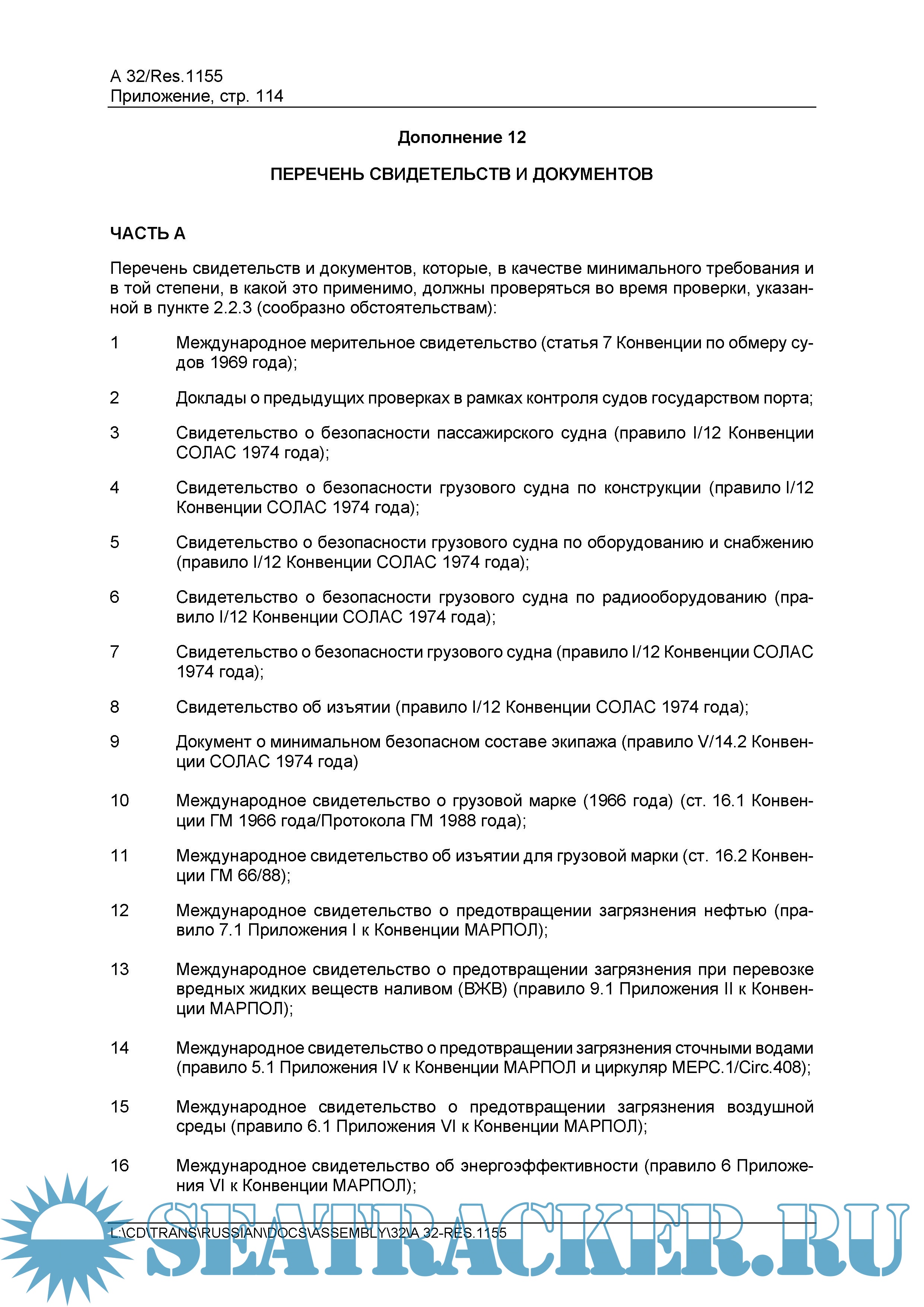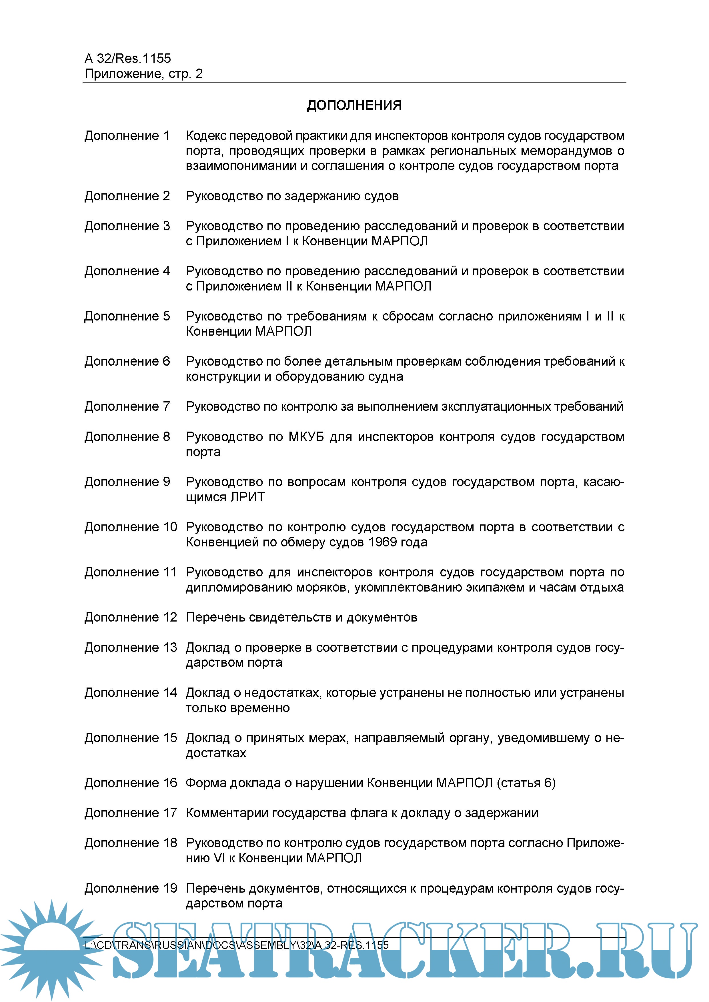 Процедуры контроля судов государством порта 2021 года. Резолюция А.1155(32)