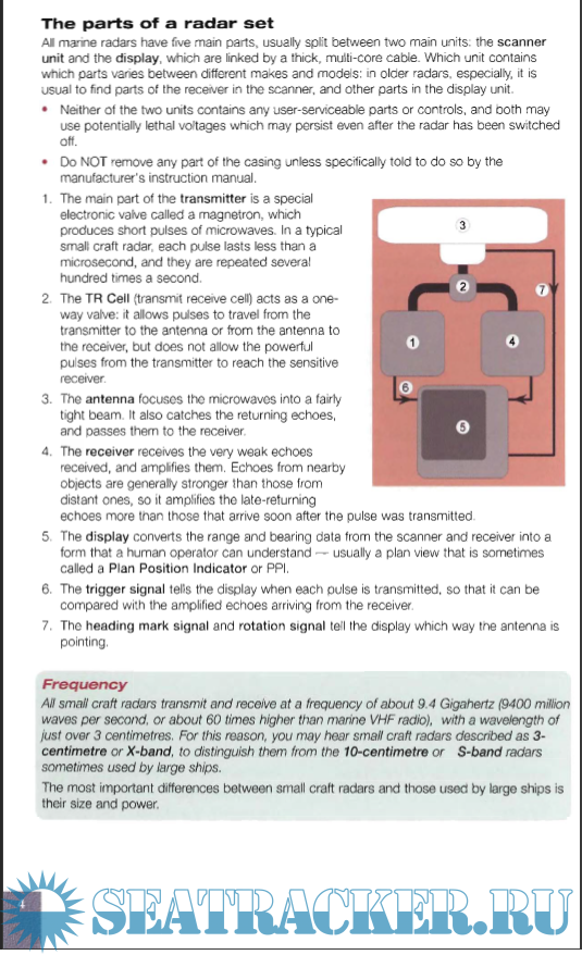 Description: The Royal Yachting Association (RYA), Southampton, UK, 2005, 33 p. — ISBN: 9781905104109.The RYA'S Complete GuideMarine radar is an electronic device which measures the bearing and distance of solid objects and presents this information in the form of a plan view, showing the location of objects such as land, navigation marks, and other vessels.It works by transmitting short bursts of super high frequency radio energy (called microwaves) and receiving the echoes that are returned when these pulses of energy are reflected back from solid objects.Background briefing